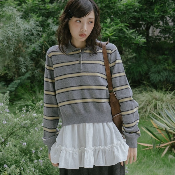 ■ポロ襟×マルチボーダーで韓国っぽ旬顔コーデに■