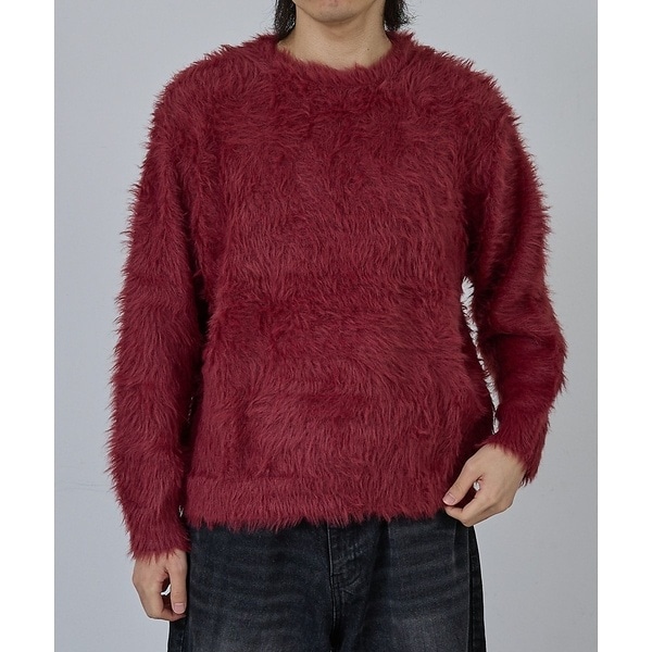 毛足の長いロングシャギー素材を採用した、柔らかく上品な質感が魅力のクルーネックニット。