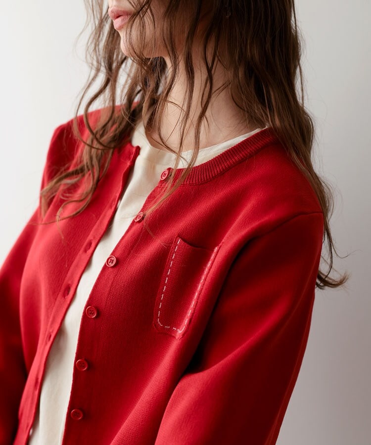 【最終値下げ新品タグ付き未使用】pufe ミニポッケカラーカーディガン パープル
