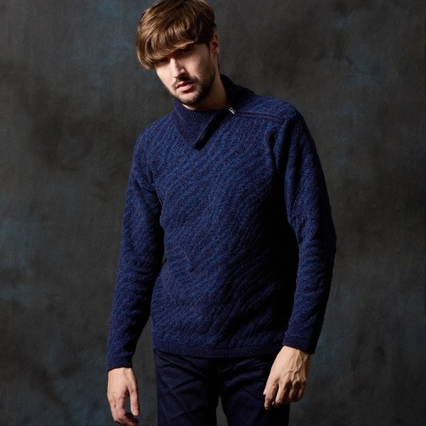 肩先から衿にかけてのファスナ-使いがデザインポイントのプルオーバーニットになります。