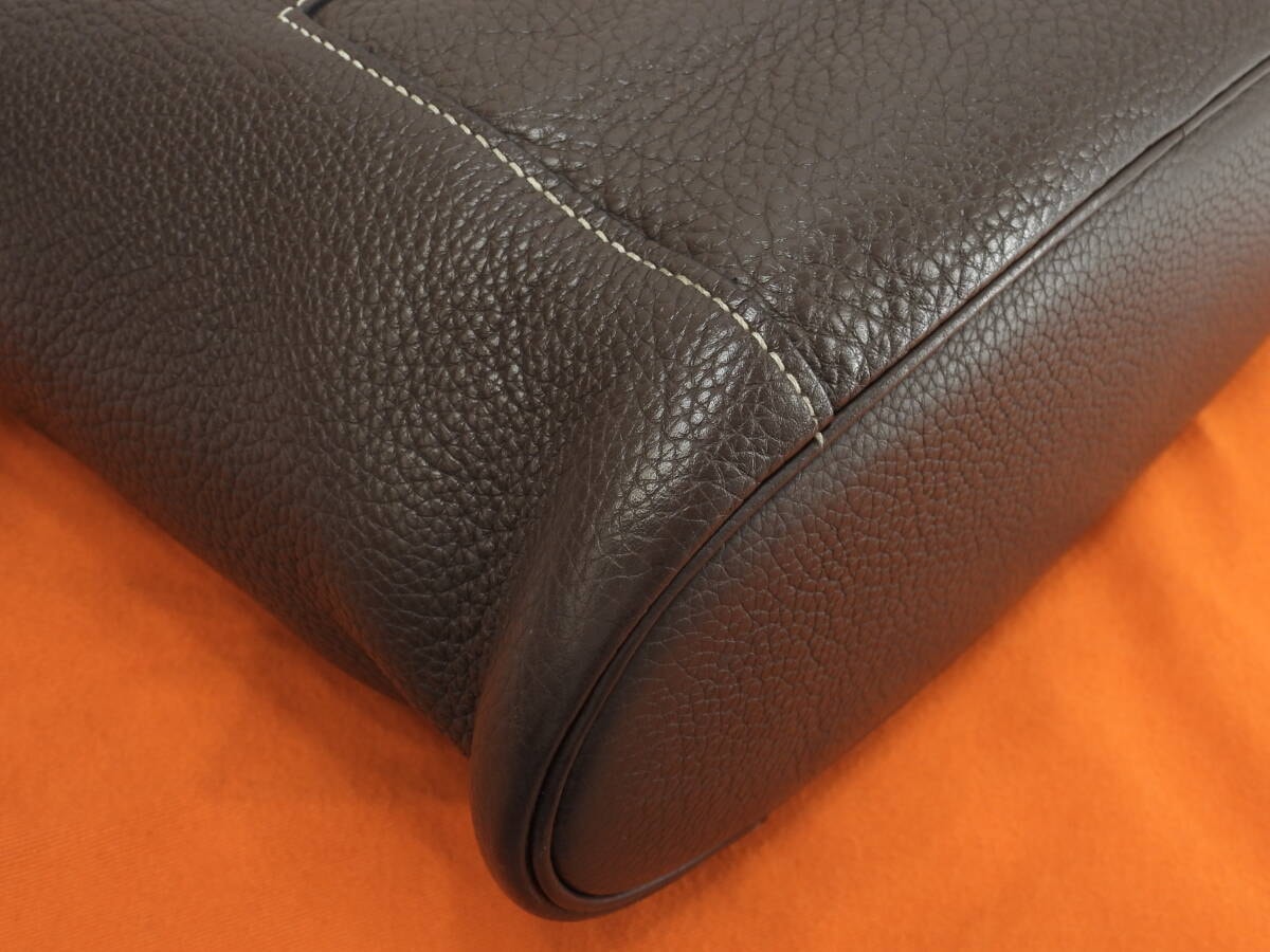 情報 : ボディは柔らかいレザーで仕上げられておりますので型崩れ・しわが少しございますが、目立つダメージはなく綺麗なほうです。底部淵に薄スレが少しございます。ショルダーストラップは気になるシミ・汚れ・スレ・弱りもなく状態は良いです。バッグ内は気になるシミ・汚れもなく綺麗です。金具部分は使用による薄スレ・小傷が少しございますが、メッキ剥げはございません。