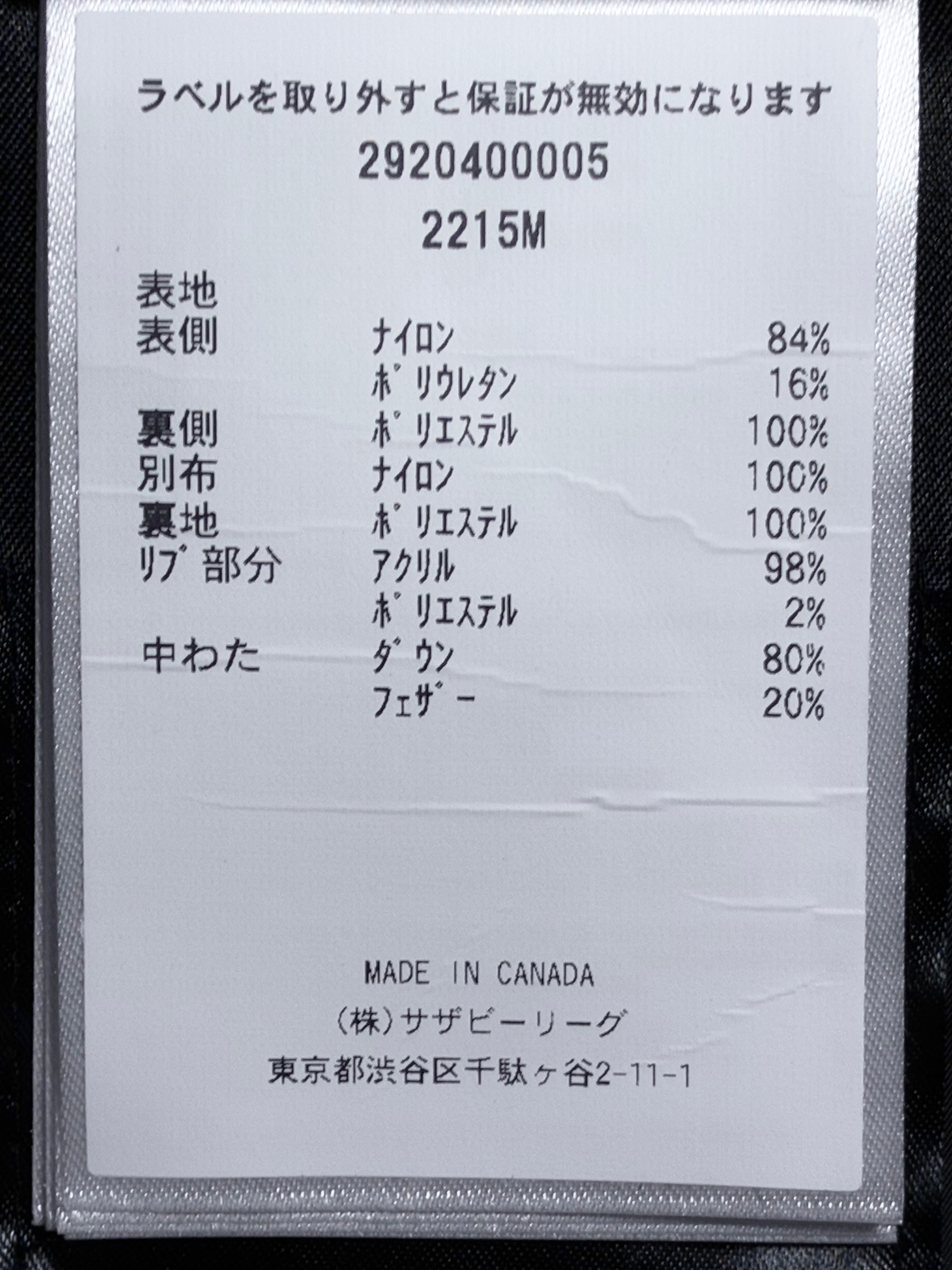 •中綿:ホワイトグースダウン 675 フィルパワー/ダウン:フェザー=80:20
