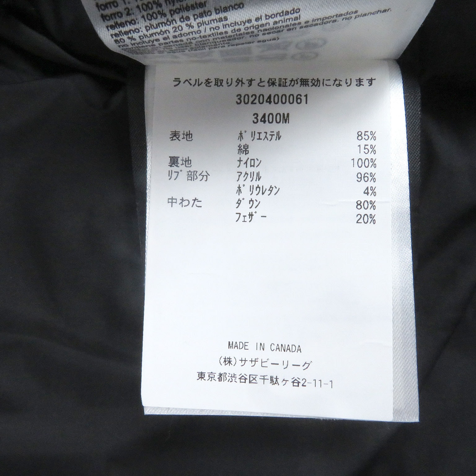 中綿:ダウン80%