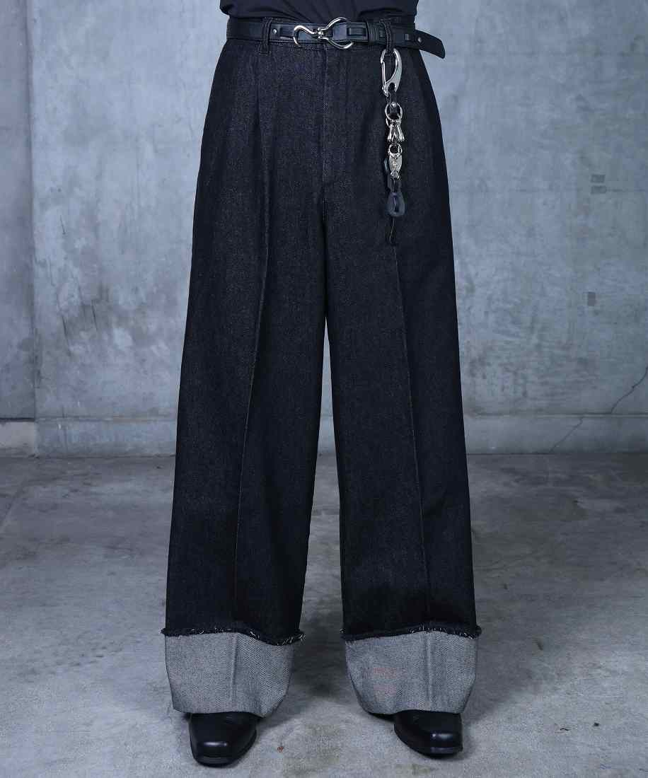 大胆なロールアップがアクセントのデニムスラックスが新登場。