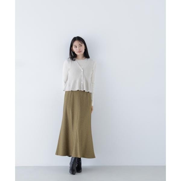 ネップツイード素材がシーズンムードを引き立てる表情豊かなナロースカート。バイアス取りのパターンで体のラインに自然に馴じむ美しいシルエットです。裾にかけてほんのり広がる優しいフレア感で動きにニュアンスをプラス。オンオフ問わずに活躍する上品なデザインは、着回し力も抜群です。<素材>ネップ入りツイード素材を使用しています。<詳細>仕様・後ろファスナー裏地・あり透け感・なし / 光沢・なし / 伸縮性・なし生地の厚さ・普通※モデルの着用画像の場合、光の当たり具合により、実際の色味と異なって見えることがございます。色味は、商品単体の画像をご参照ください。