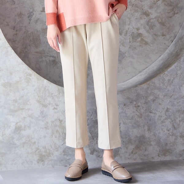 フロントにピンタックを入れており、足を真っすぐきれいに見せてくれる美ラインパンツ。