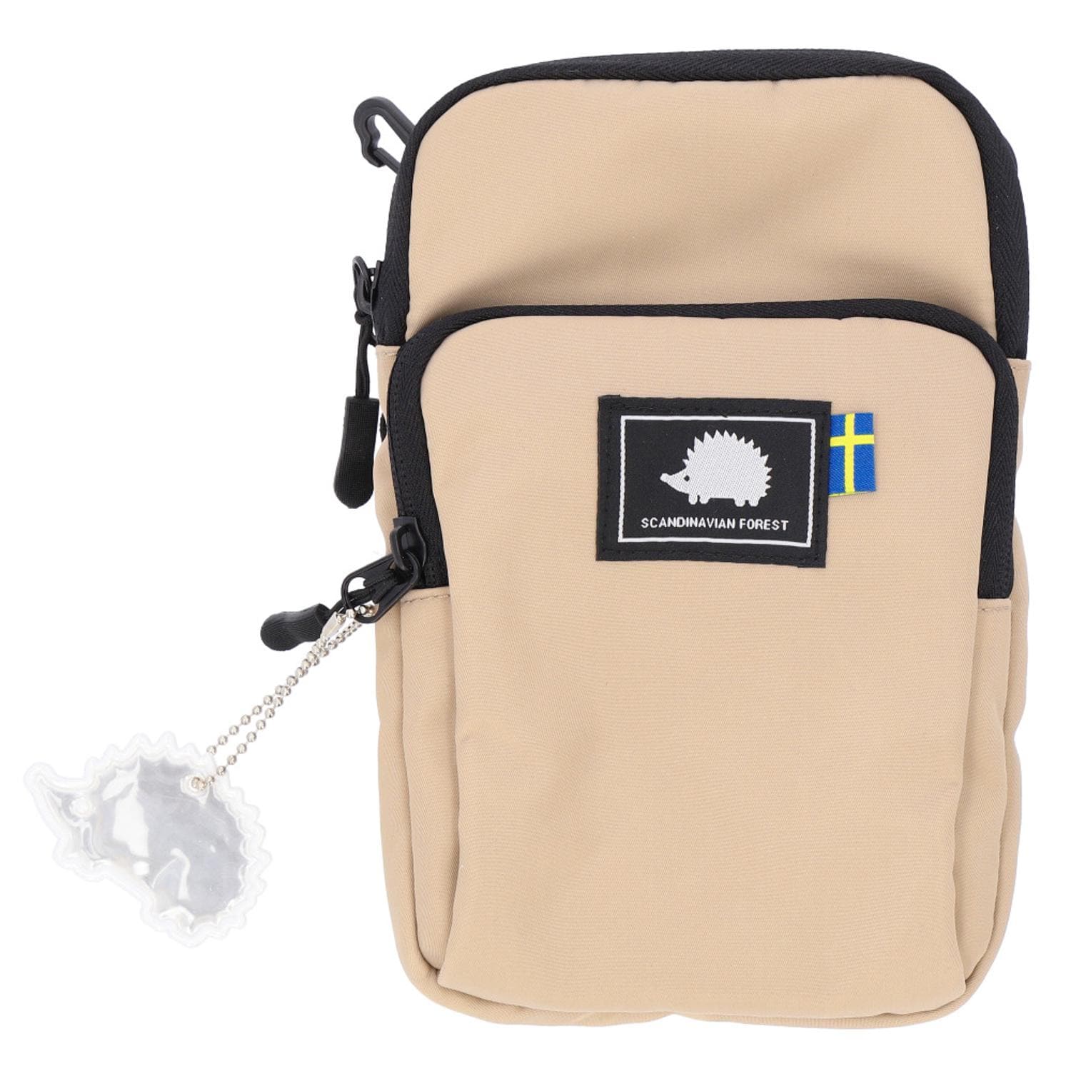 ハリネズミのロゴがかわいい♪SCANDINAVIAN FORESTから、ミニマルスタイルにおすすめの「スマホショルダーバッグ」が新登場。【コンパクトサイズ】お出かけ時にサッと持ち出して、身軽にGO!スマホがスムーズに収まる縦型タイプで、野外でのイベントやアウトドアシーンでも活躍するアイテム。【ファスナー開口】開口部はファスナー式で、中身がこぼれ落ちることなく、プライバシーを確保。【最低限の小物をIN】内側はミニ財布や薄手のハンカチなど、必要最低限の小物がすっきり収まるサイズ感。仕分けできる内ポケット付き。【サッと取り出せる外ポケット】前面のファスナーポケットには、リップやエチケットグッズを。内ポケット&鍵を取り付けできるフックも装備。背面ポケットにはパスケースなどを収納。【ちょっとの雨なら大丈夫】表面に汚れや水滴を弾くはっ水生地を使用。お手入れもサッと拭き取るだけ!(※完全防水ではありません。)【使い方自在】ショルダーストラップの長さを調節して、自分仕様にアレンジ☆取り外して、バッグインポーチとしても☆【シンプルなユニセックス仕様】無地カラーの生地に、フロントのブランドロゴタグ&取り外し可能なチャームがアクセント。お揃いやリンクコーデもできちゃう!【ポケット仕様】内側:オープンポケット×1前面ポケット:オープンポケット×1背面:オープンポケット×1