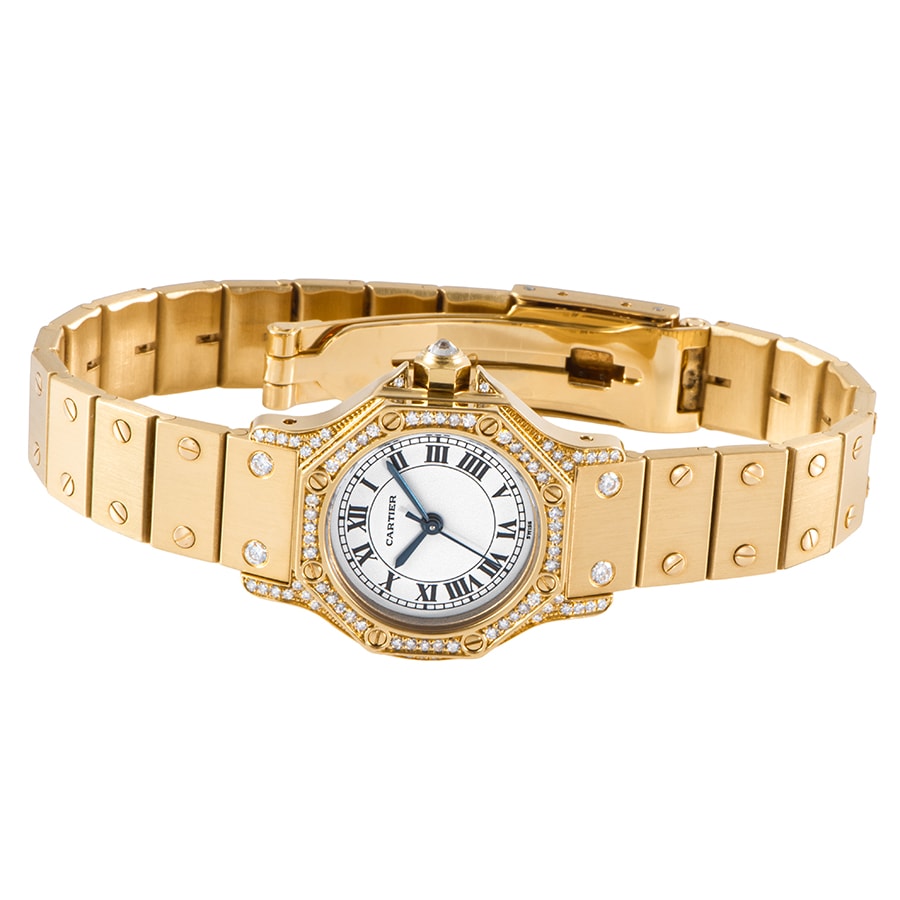 オールK18YG製でベゼルやラグ、ブレスレットの一部にダイヤモンドをあしらった特別なモデルとなっています。
