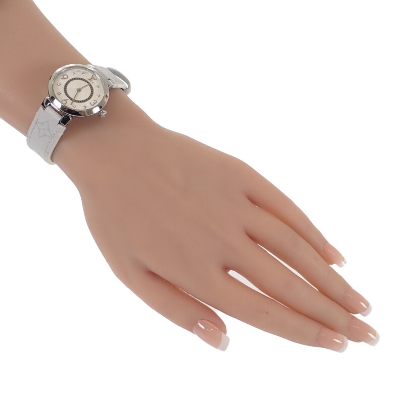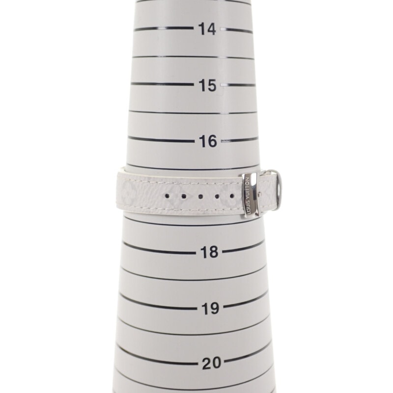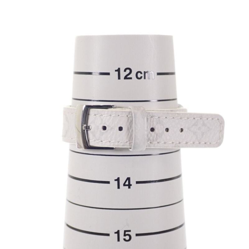 ベルトにはモノグラムパターン入りのホワイトレザーストラップを採用し、クラシックでありながら現代的なスタイルに仕上げられています。