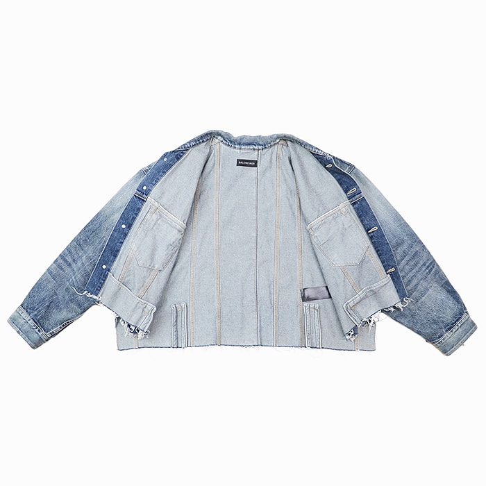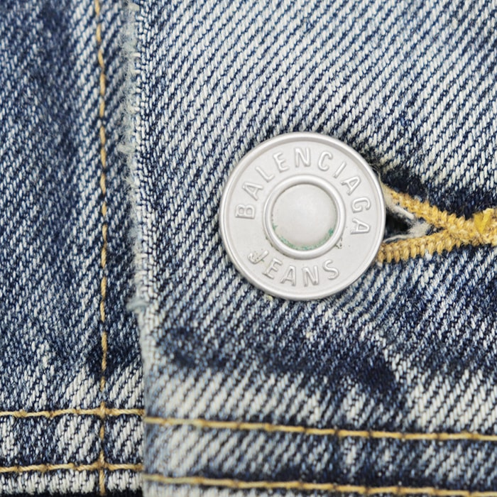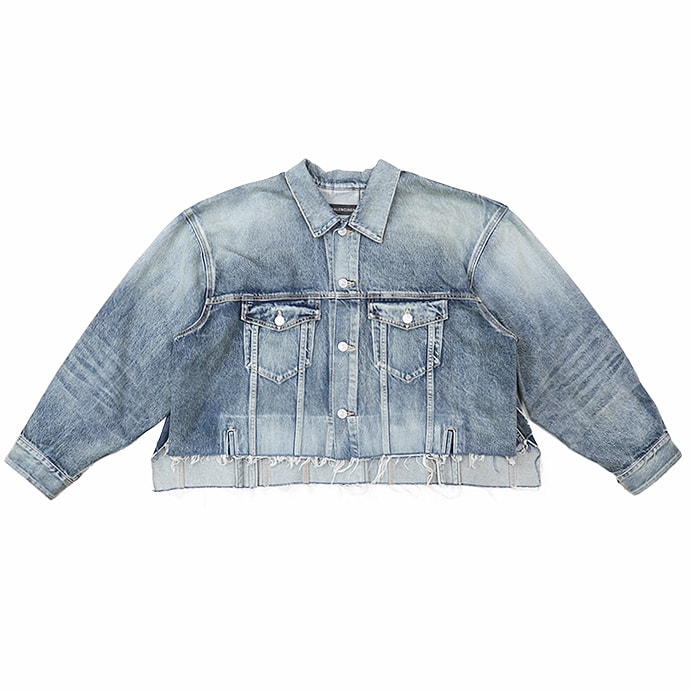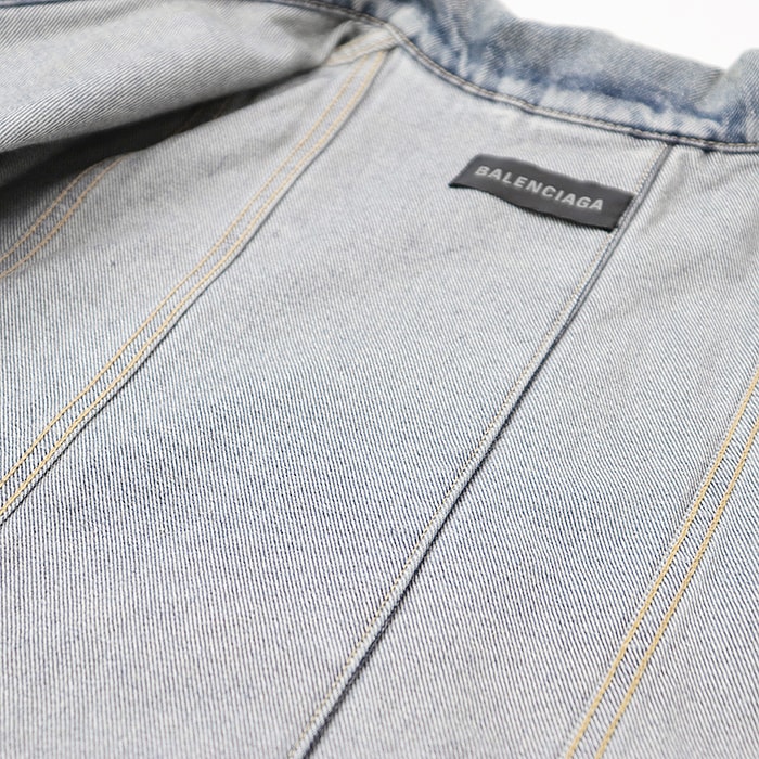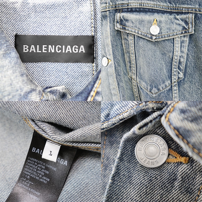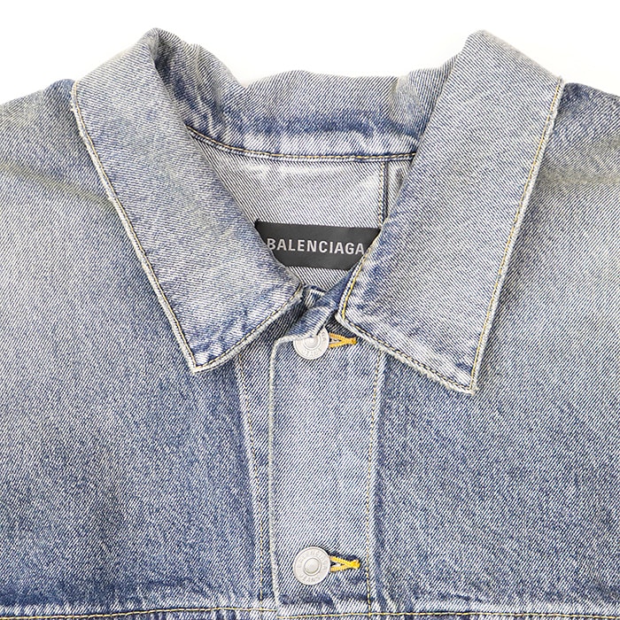 【シリーズ】BALENCIAGA バレンシアガ デニムジャケット 2022年製 破壊デザイン カットオフ ダメージ加工 レディース 1 インディゴ 日本製