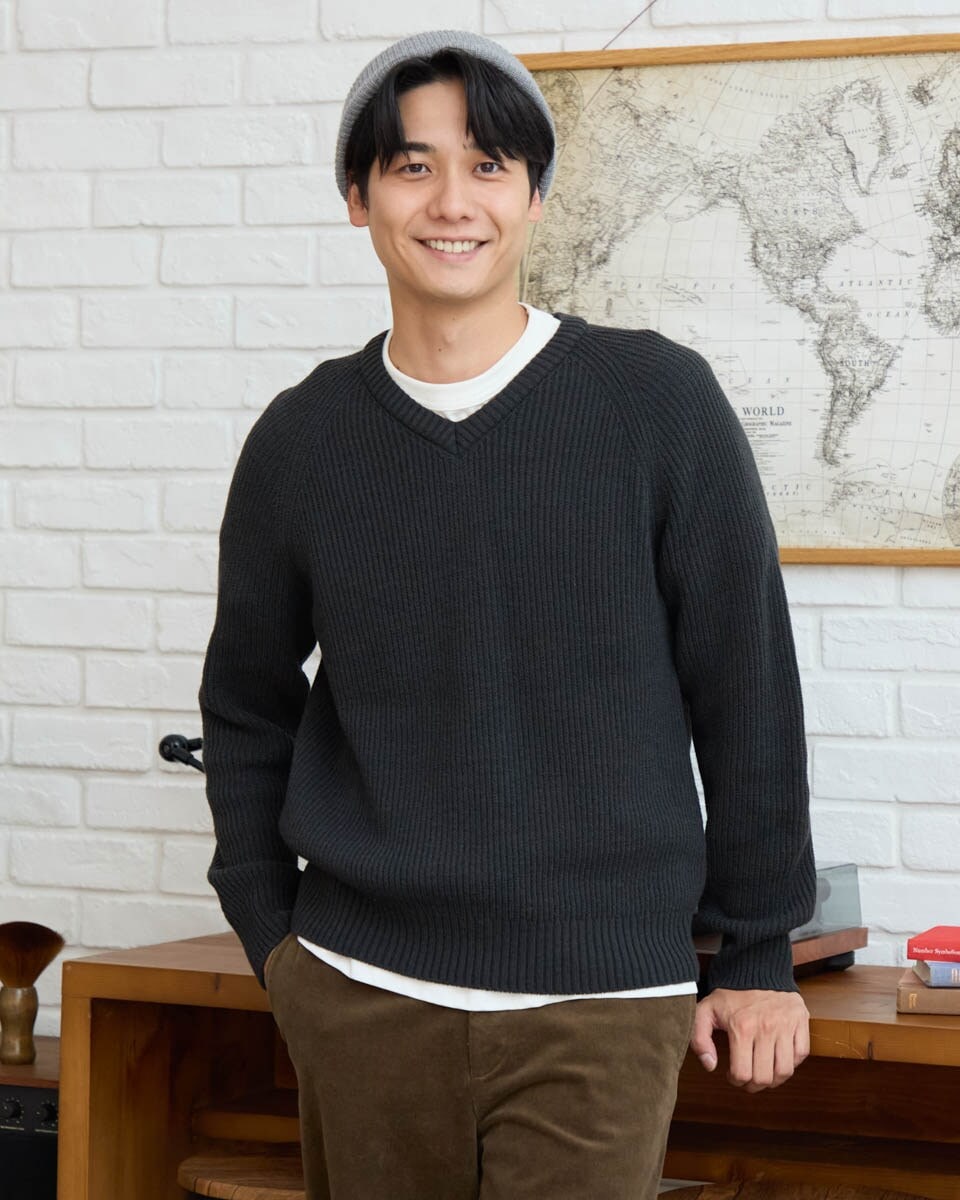 アメリカンホリック ブラウン Vネック ニットセーター 長袖