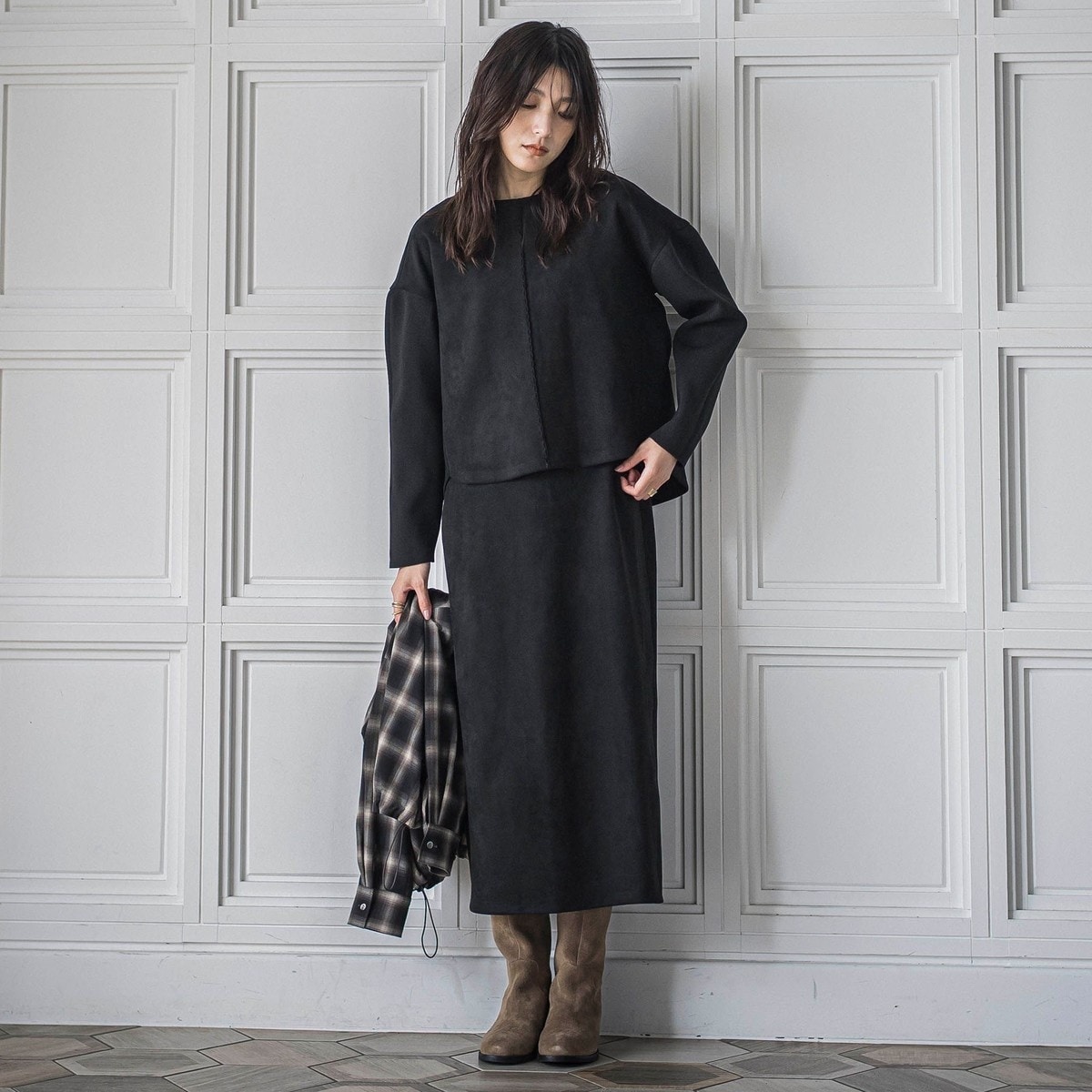 スウェード素材セットアップ スカート