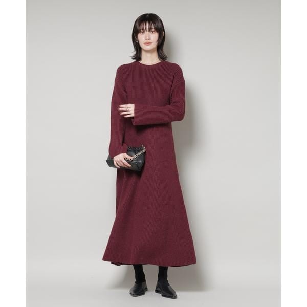 裾のフレアが女性らしい雰囲気を演出するニットワンピース。適度な肉感の片畦編みを使用しているため、身体のラインにフィットしすぎず、自然なフレア感を演出。暖かく着心地も良いため、冬のスタイリングに活躍する重宝アイテムです。