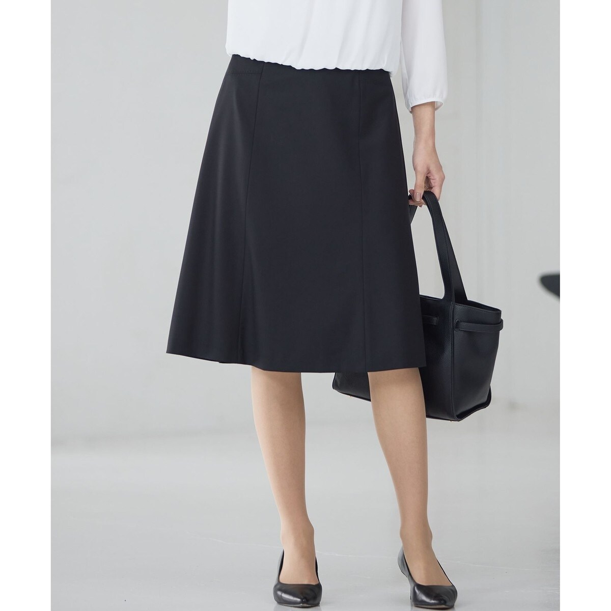 23区の定番として愛される、美しいフレアシルエットが魅力のスカートです。裾に向かってしなやかに広がるラインは、気になる脚のラインを拾いすぎず、どなたにも上品に着こなしていただけます。同素材のジャケットと合わせれば、洗練されたセットアップスタイルが完成。単品使いでも、ブラウスやきれいめのニットと相性抜群で、シーズンを問わずオフィスで着用いただけます。短すぎない丈感は、座った時にも膝が隠れる上品さをキープし、あらゆるシーンで安心感を与えます。 カラーは、着回し力抜群のベーシックなブラック(#005)、濃紺寄りの深いネイビーストライプ(#175)、洗練された都会的な雰囲気を醸し出すグレー(#004)の3色展開です。