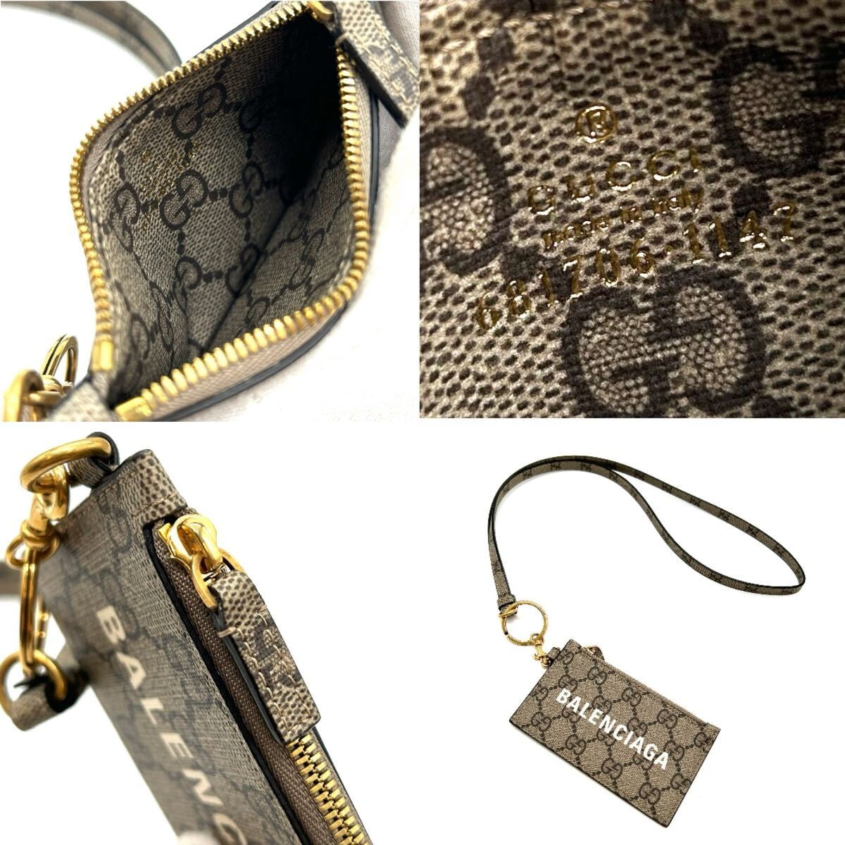 【商品名】GUCCI BALENCIAGA グッチ バレンシアガ フラグメントケース カードケース ザハッカープロジェクト ネックショルダー 681706 ウォレット 財布 ロゴ コラボ 美品 メンズ レディース ユニセックス flagmentcase cardcase