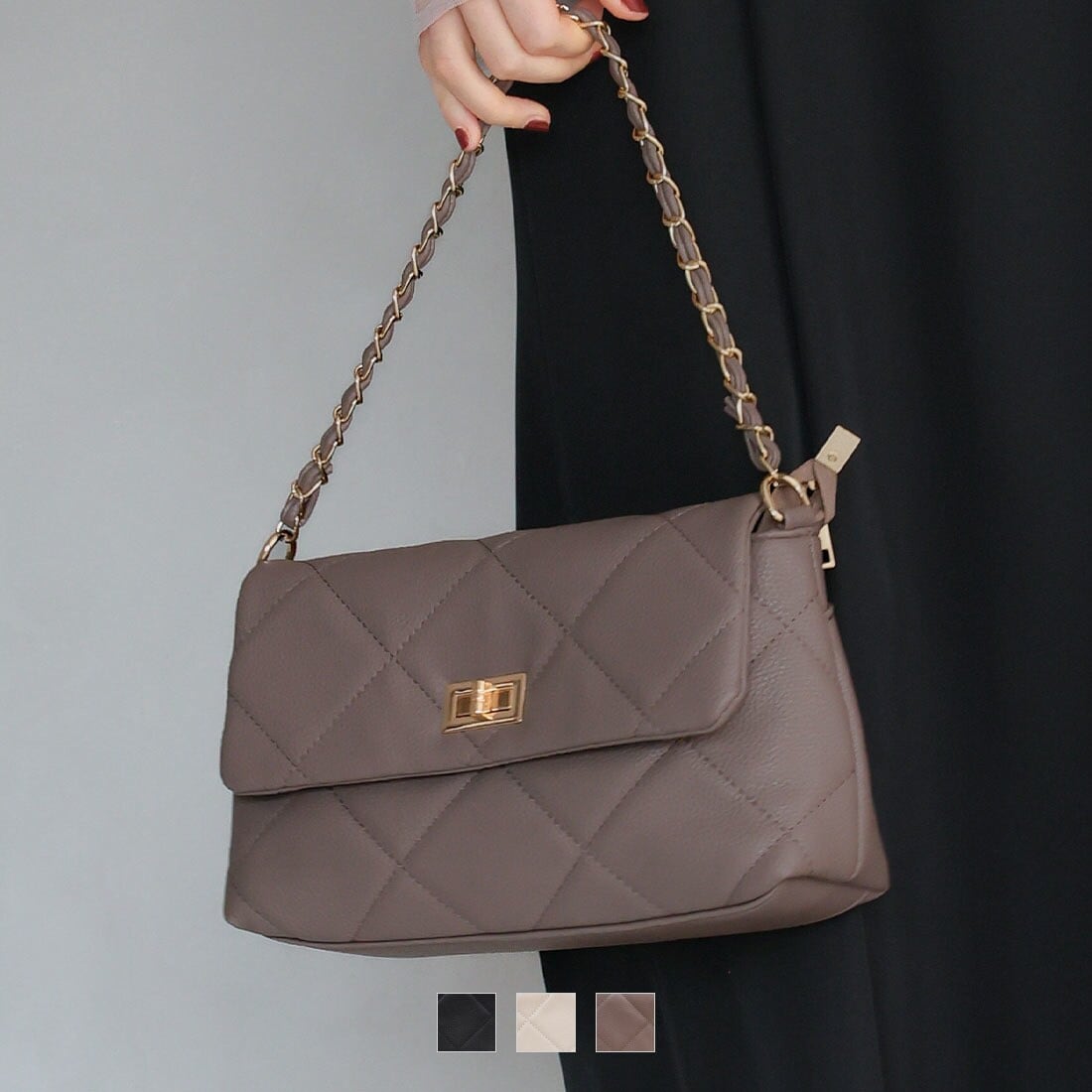 ・チェーンハンドベルトとキルティングデザインが印象的なバッグ。