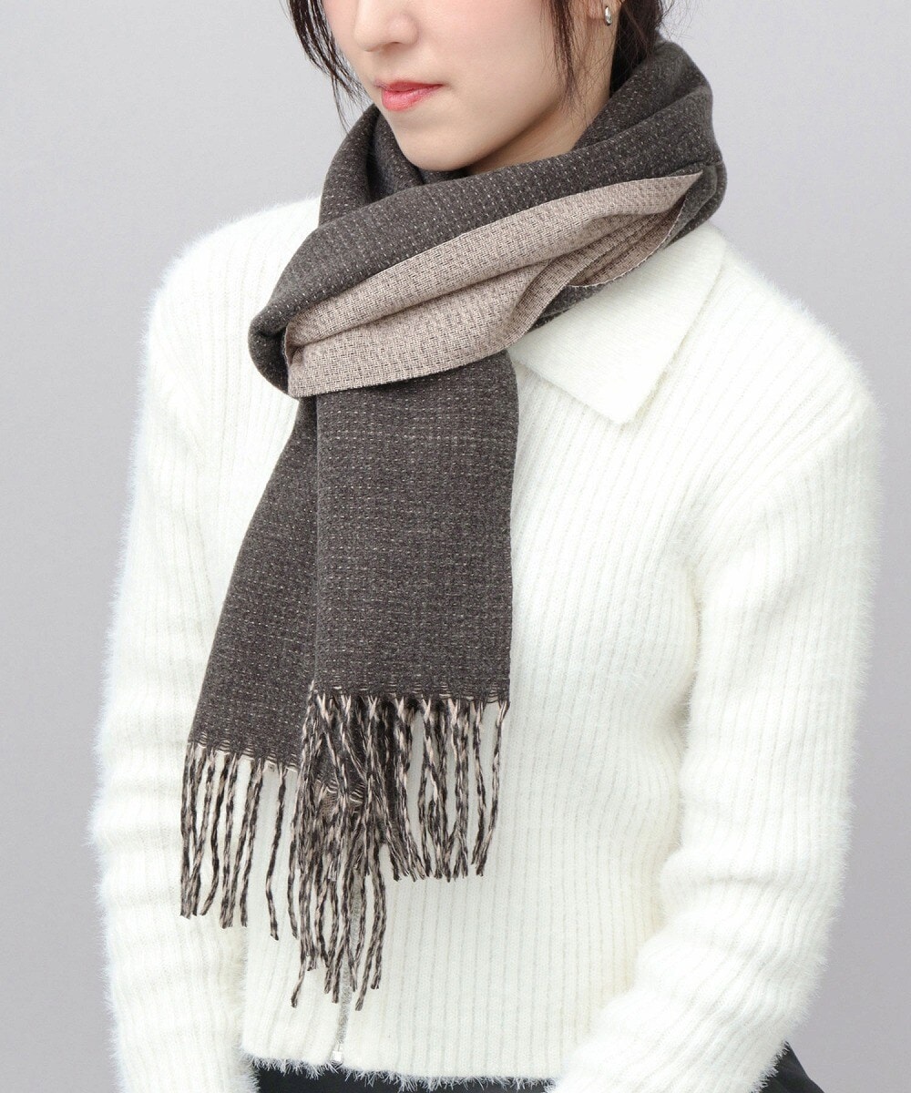 色の濃淡の組み合わせが美しい、リバーシブルデザイン。表裏で色味が異なるので、巻き方のアレンジ次第で様々な雰囲気を楽しめます。