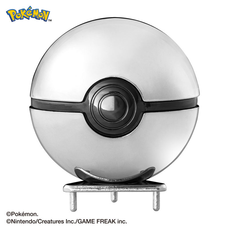 金属の質感が美しい、モンスターボールの形をしたはずる。 内部構造を想像し、試行錯誤してはずし、元に戻してください。 美しく飾れるディスプレイ用台座が付属しています。