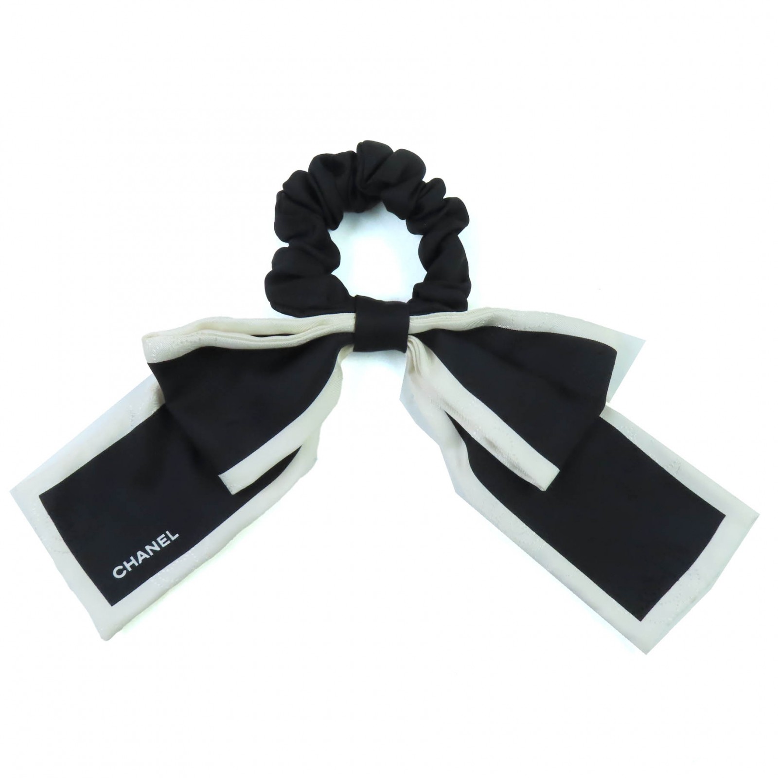 極美品☆CHANEL シャネル シルク メティエダール コレクション ココマーク リボン シュシュ ヘアアクセサリー グレー系 イタリア製 レディース【中古】