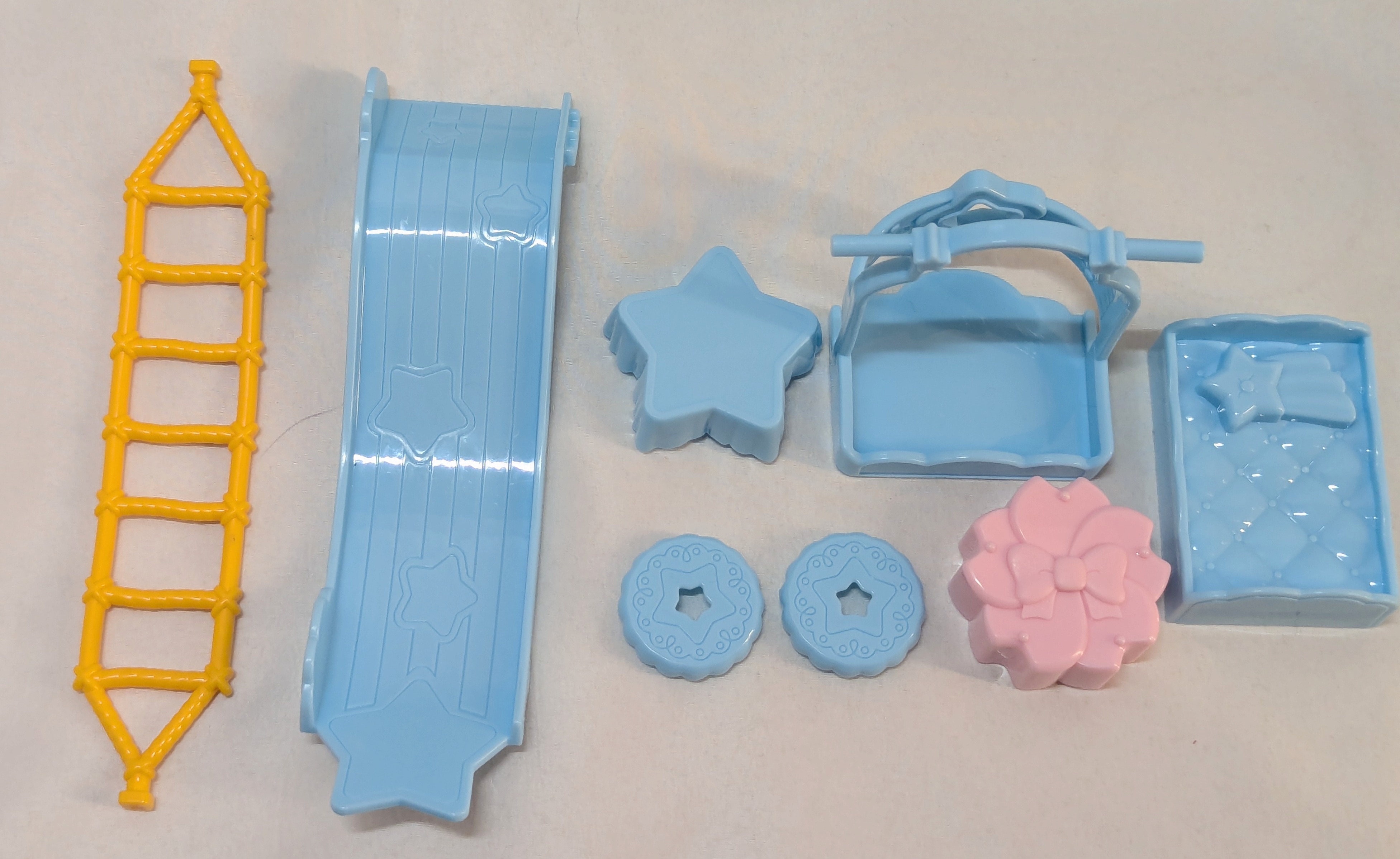 新品 ひらけここたま キラキラおでかけコンパクト にじのピアノ&こくばんセット おふろセット 小物 人形ケース お風呂人形遊び家具