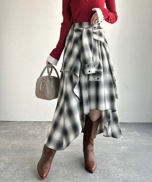 【mily bilet】カジュアルに可愛く!サイドフリンジメランジニットスカート