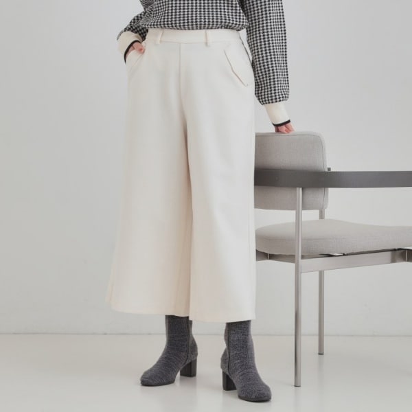 TRソフトストレッチ裏起毛ガウチョパンツ/洗える