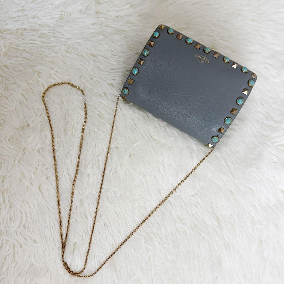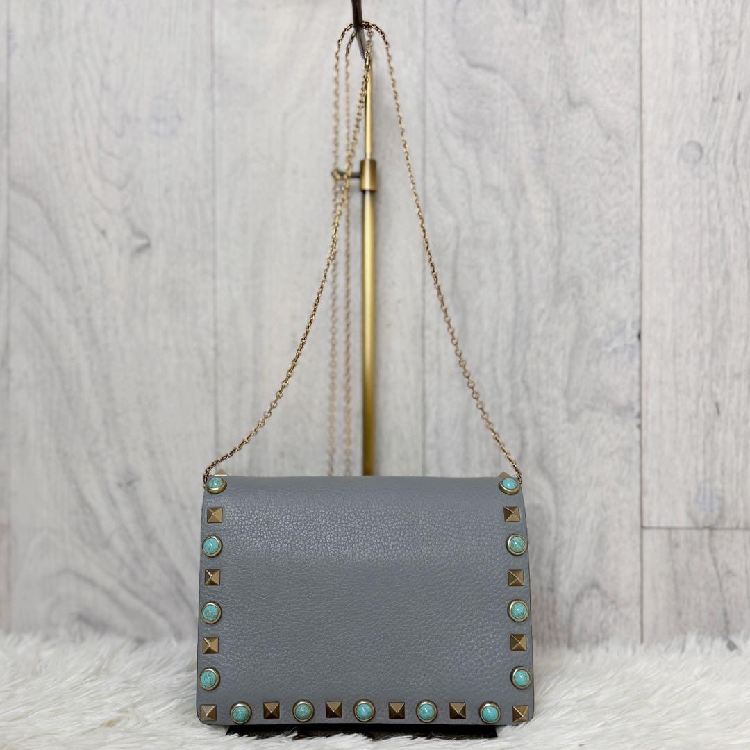 VALENTINOのブランドロゴ ロックスタッズ ターコイズ レザー チェーン ショルダーバッグです。