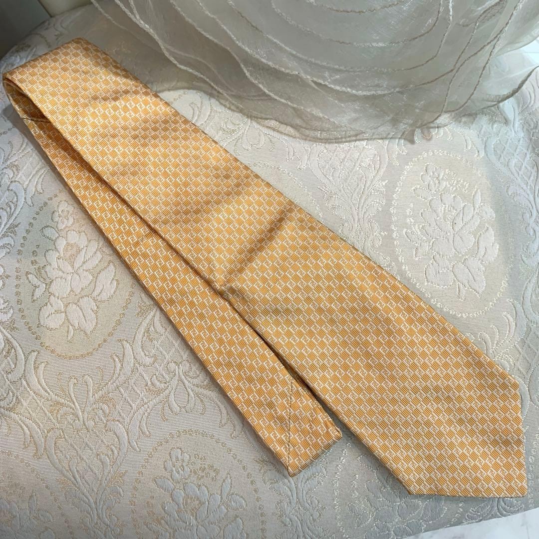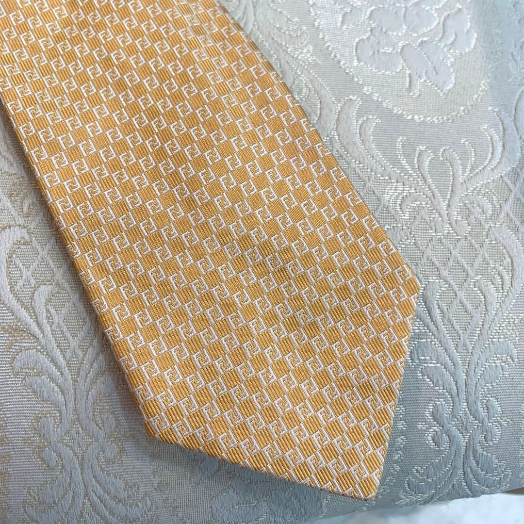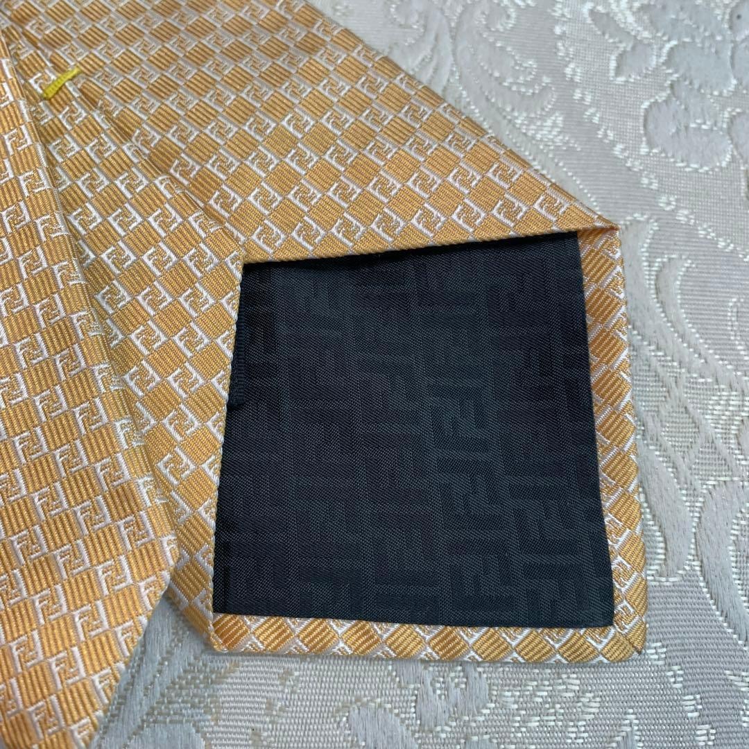 FENDI フェンディ シルクネクタイ ズッカ柄 FFロゴ イエロー系 ホワイト 刺繍 メンズ
