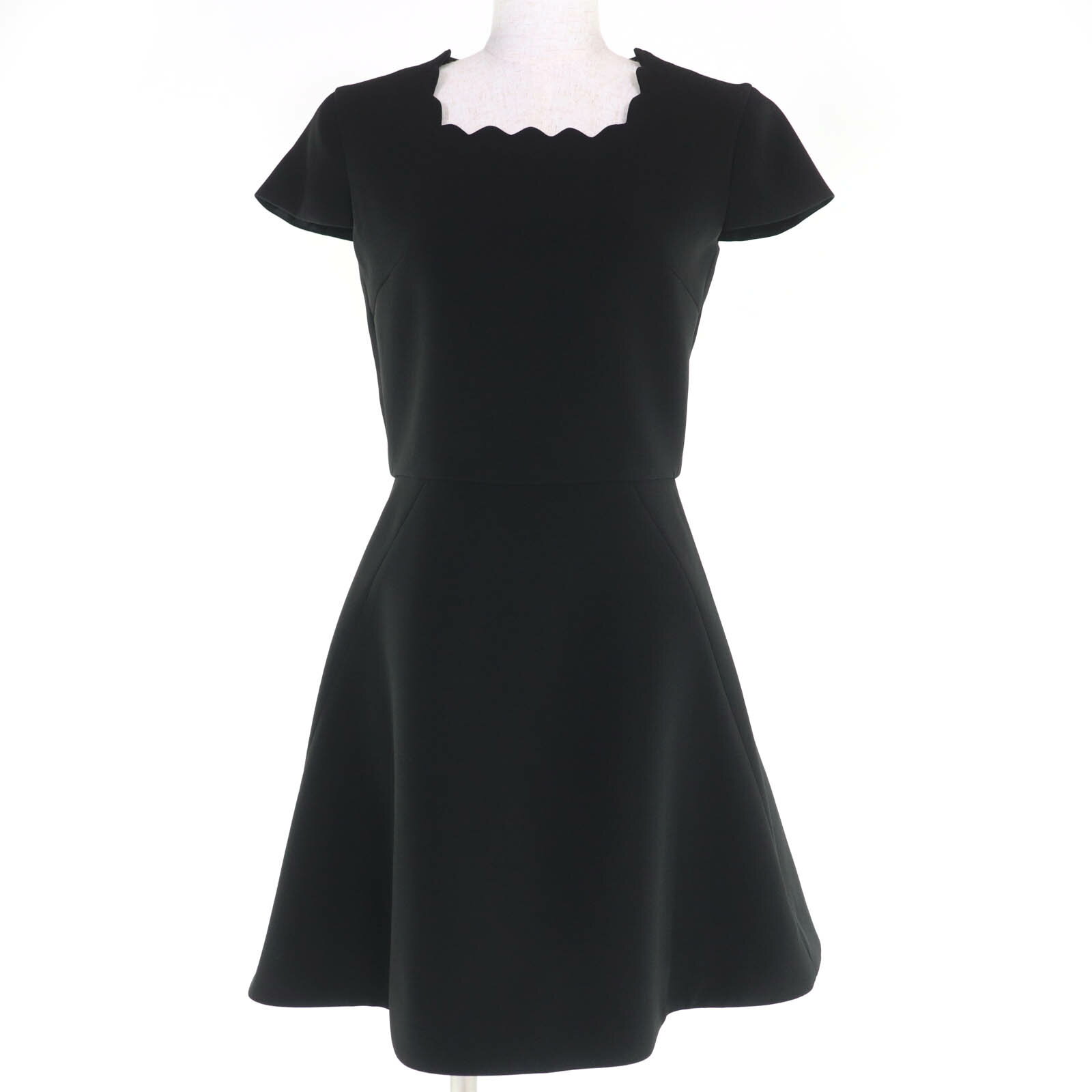 極美品☆YOKO CHAN ヨーコチャン YCD-320-695 フェイクパール付 フレンチスリーブ ワンピース ブラック 36 日本製 正規品 レディース【中古】