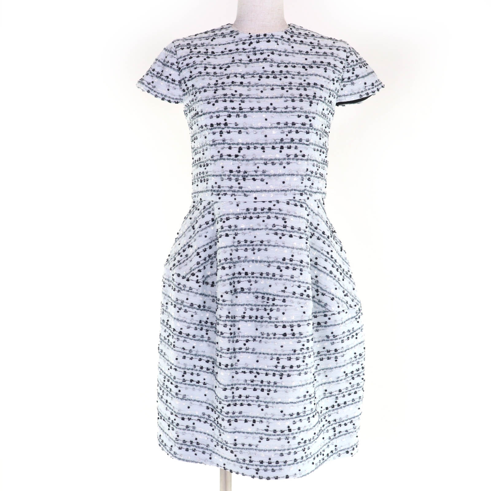 未使用品☆YOKO CHAN ヨーコチャン YCD-120-568 フェイクパール付 ノースリーブ ワンピース グレー ネイビー 38 日本製 正規品 レディース【中古】