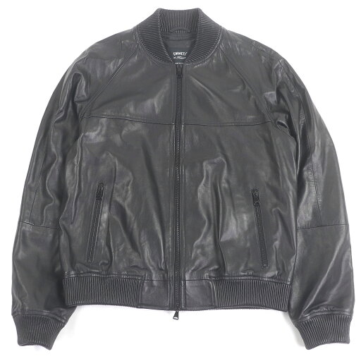 極美品□EMMETI エンメティ 8752-27 GABRUELE BR 羊革 ナッパレザー ダブルライダース レザージャケット ブラック 46 イタリア製 正規品 メンズ【中古】