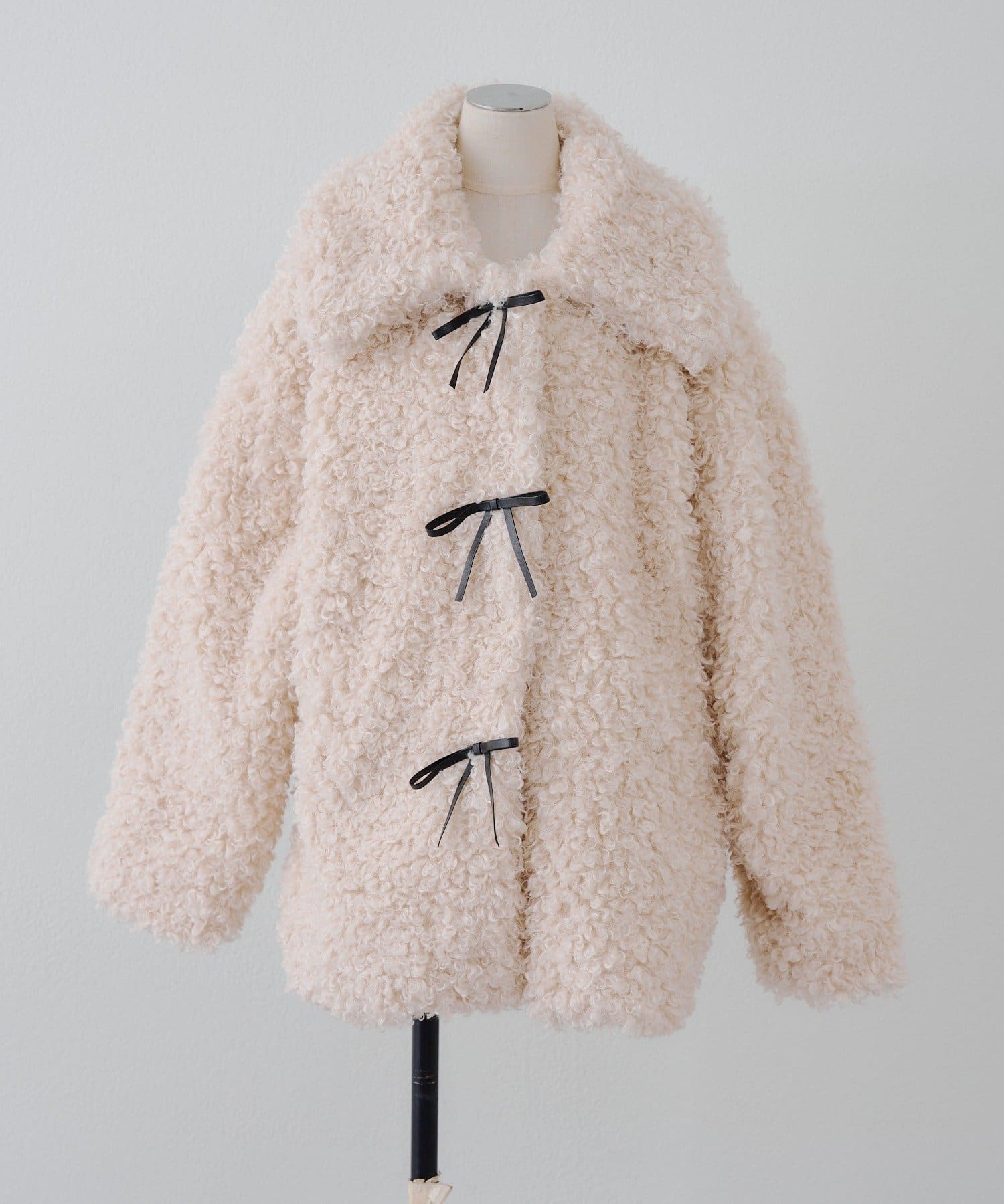 シーズンムードを高めてくれるリボン付プードルジャケットが丈違いの2サイズ展開。