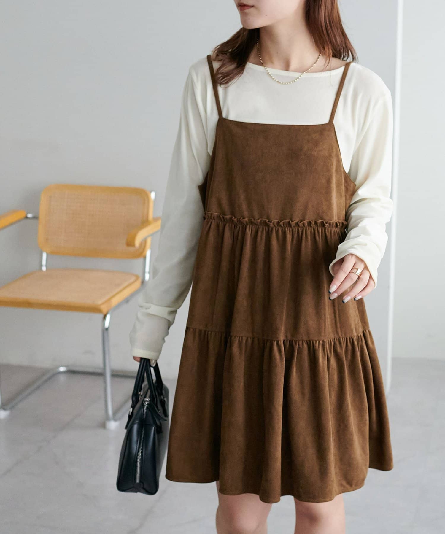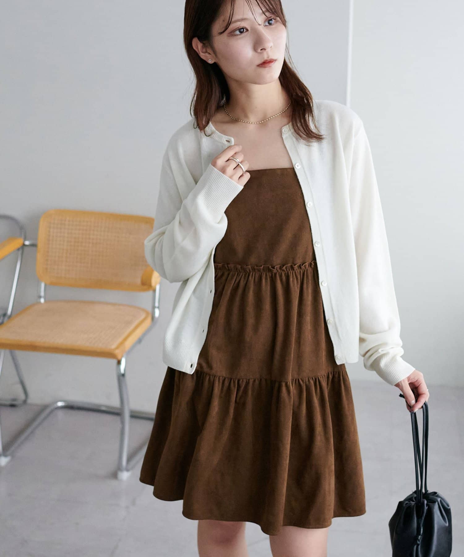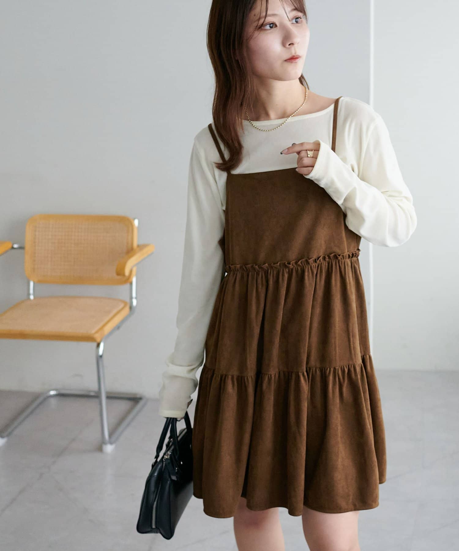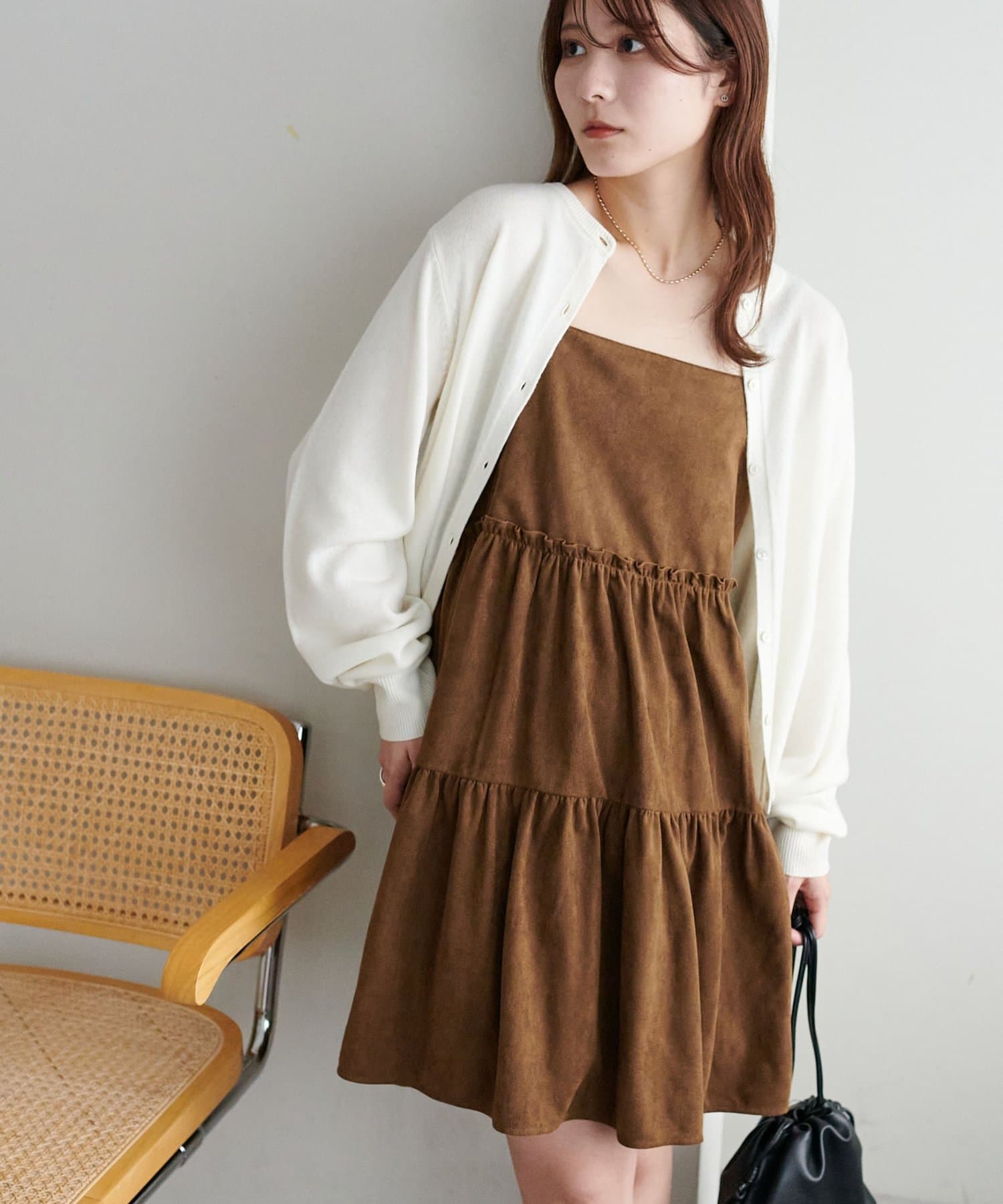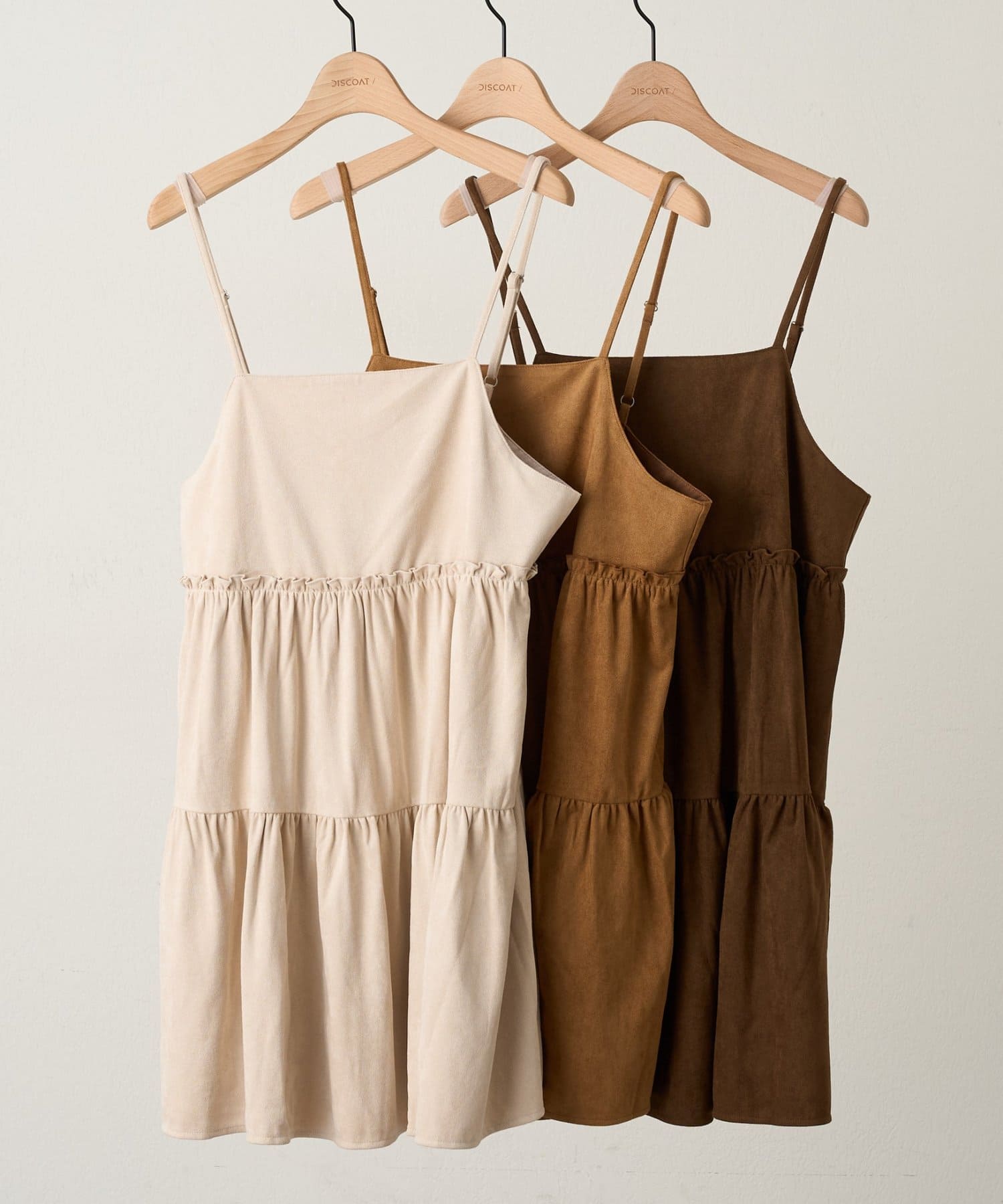 着回し力抜群のティアードキャミワンピース・ふんわり広がるティアードシルエットが目を惹くミニ丈キャミワンピース