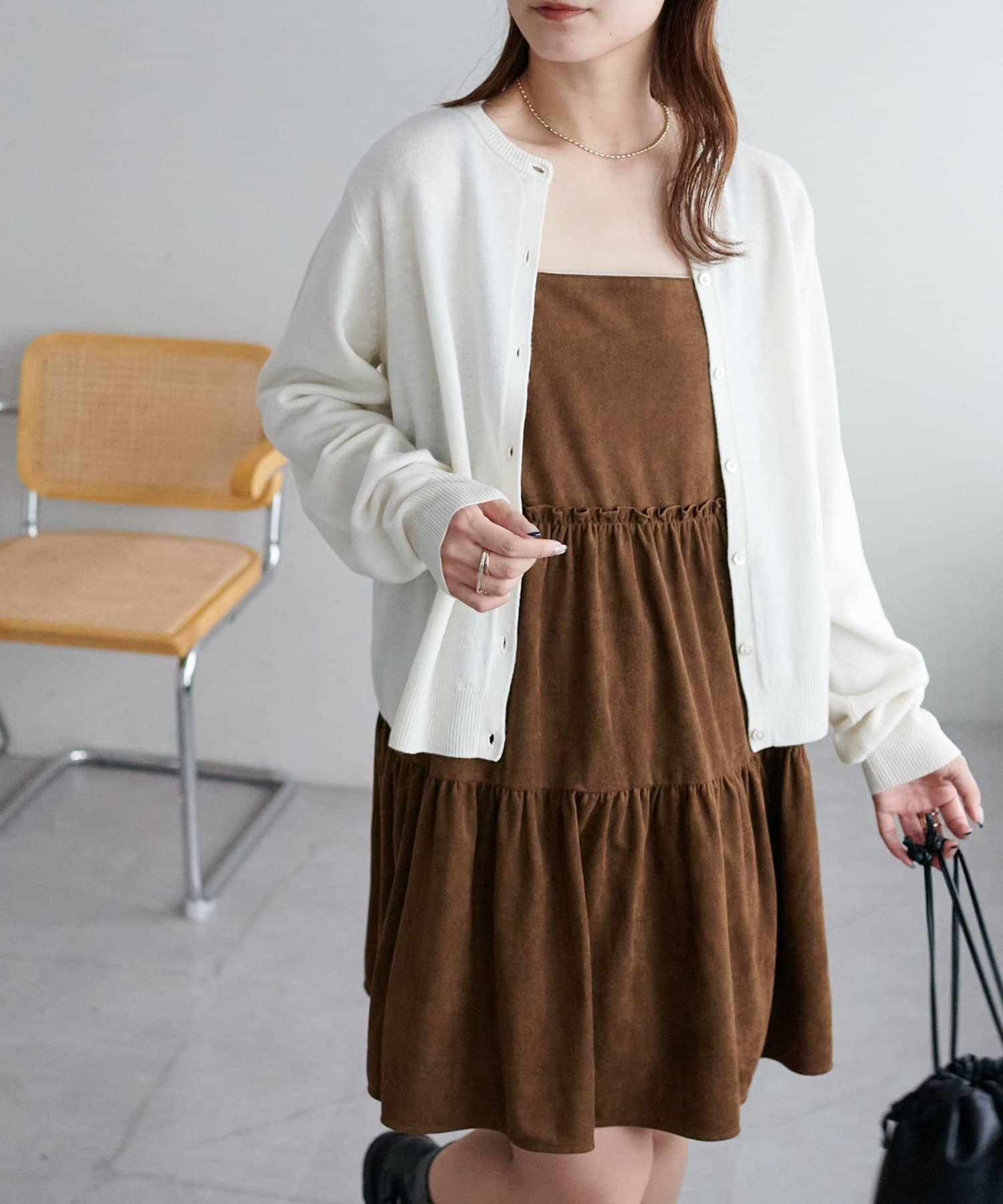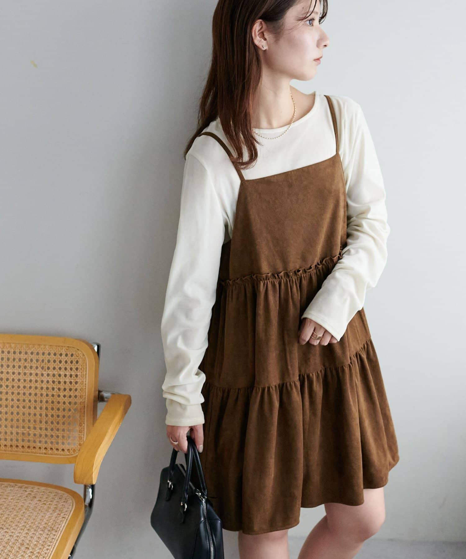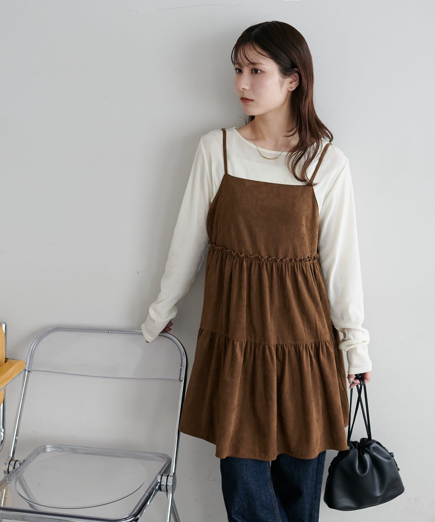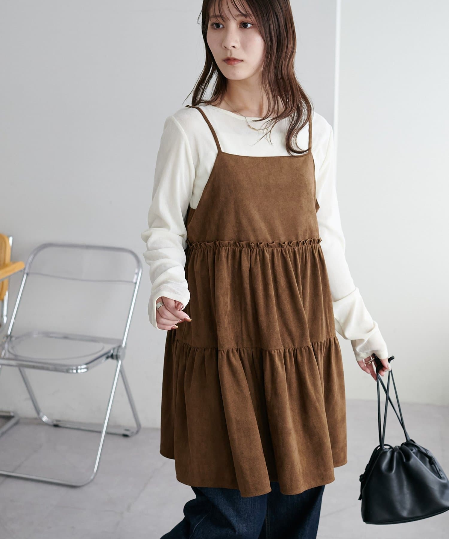 着回し力抜群のティアードキャミワンピース・ふんわり広がるティアードシルエットが目を惹くミニ丈キャミワンピース
