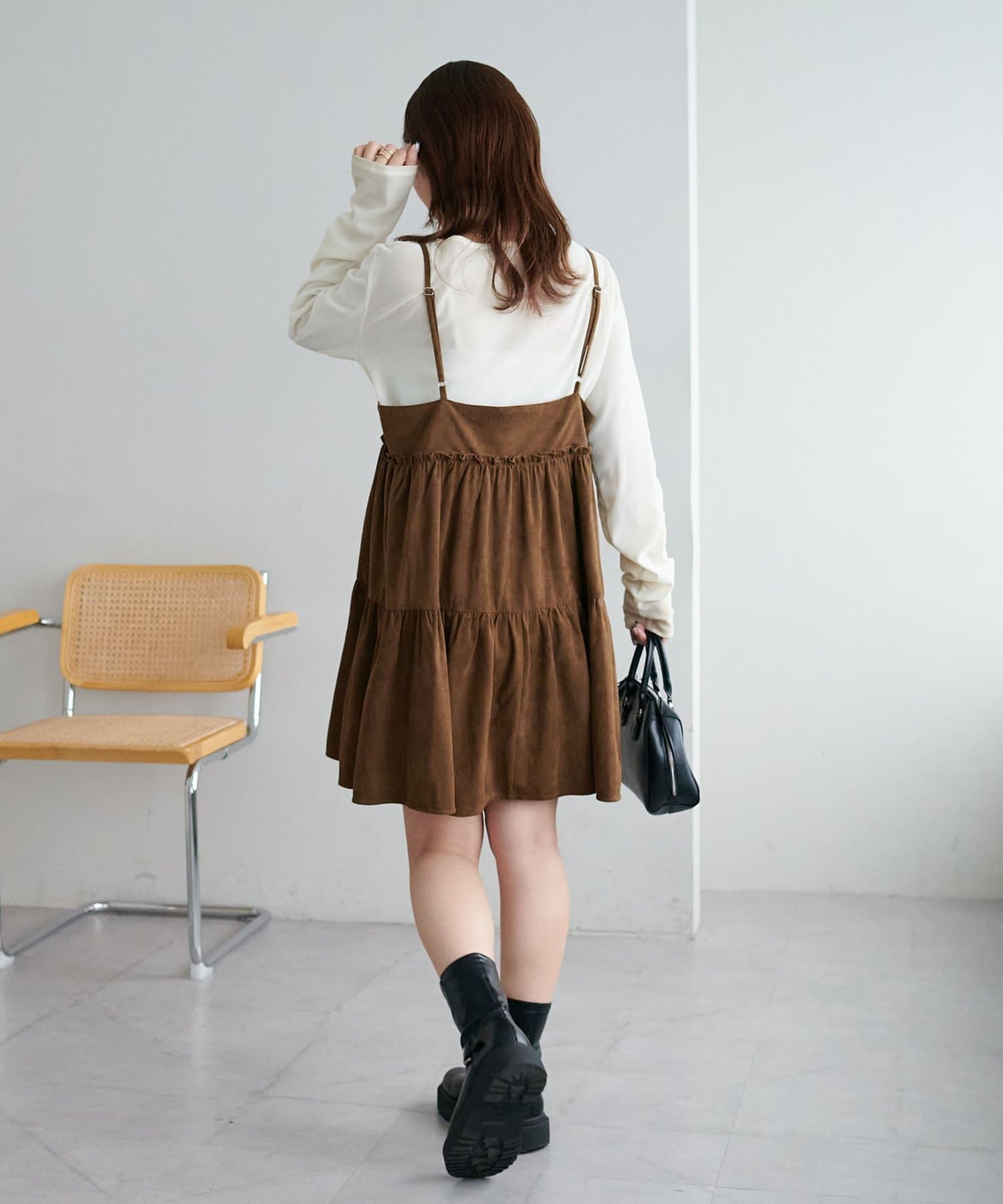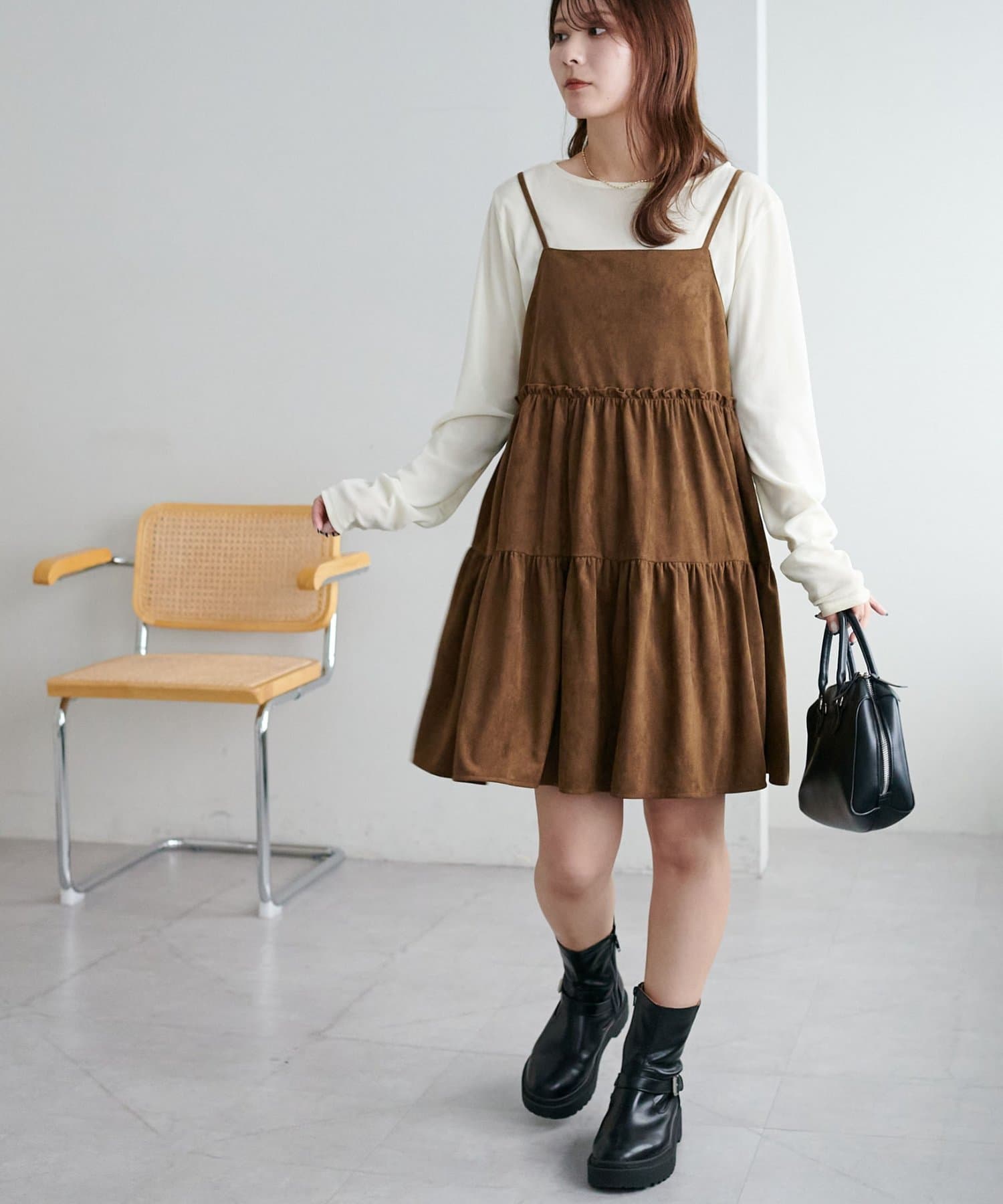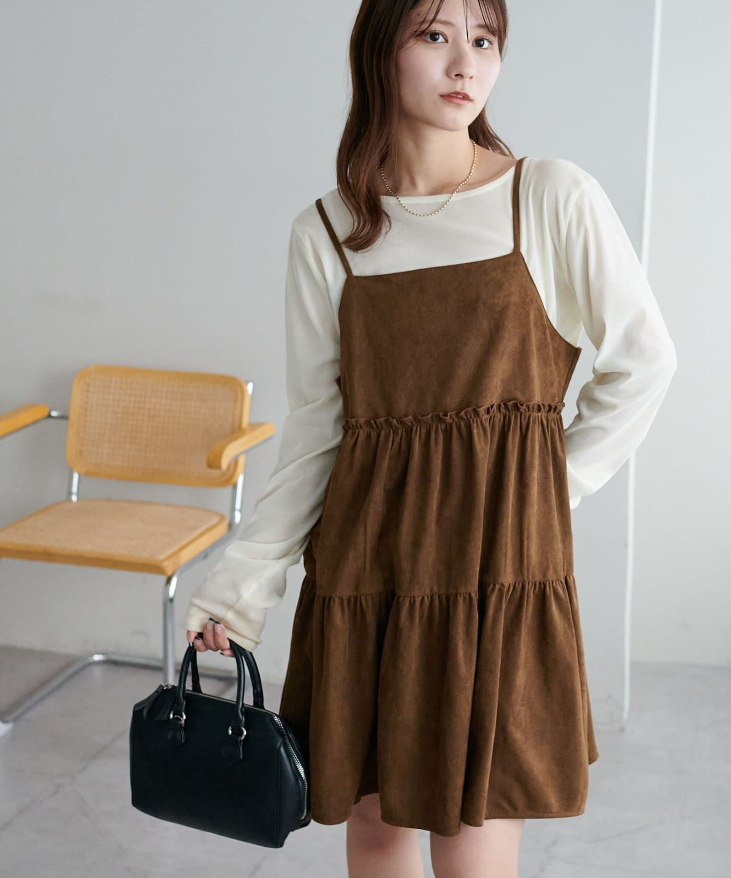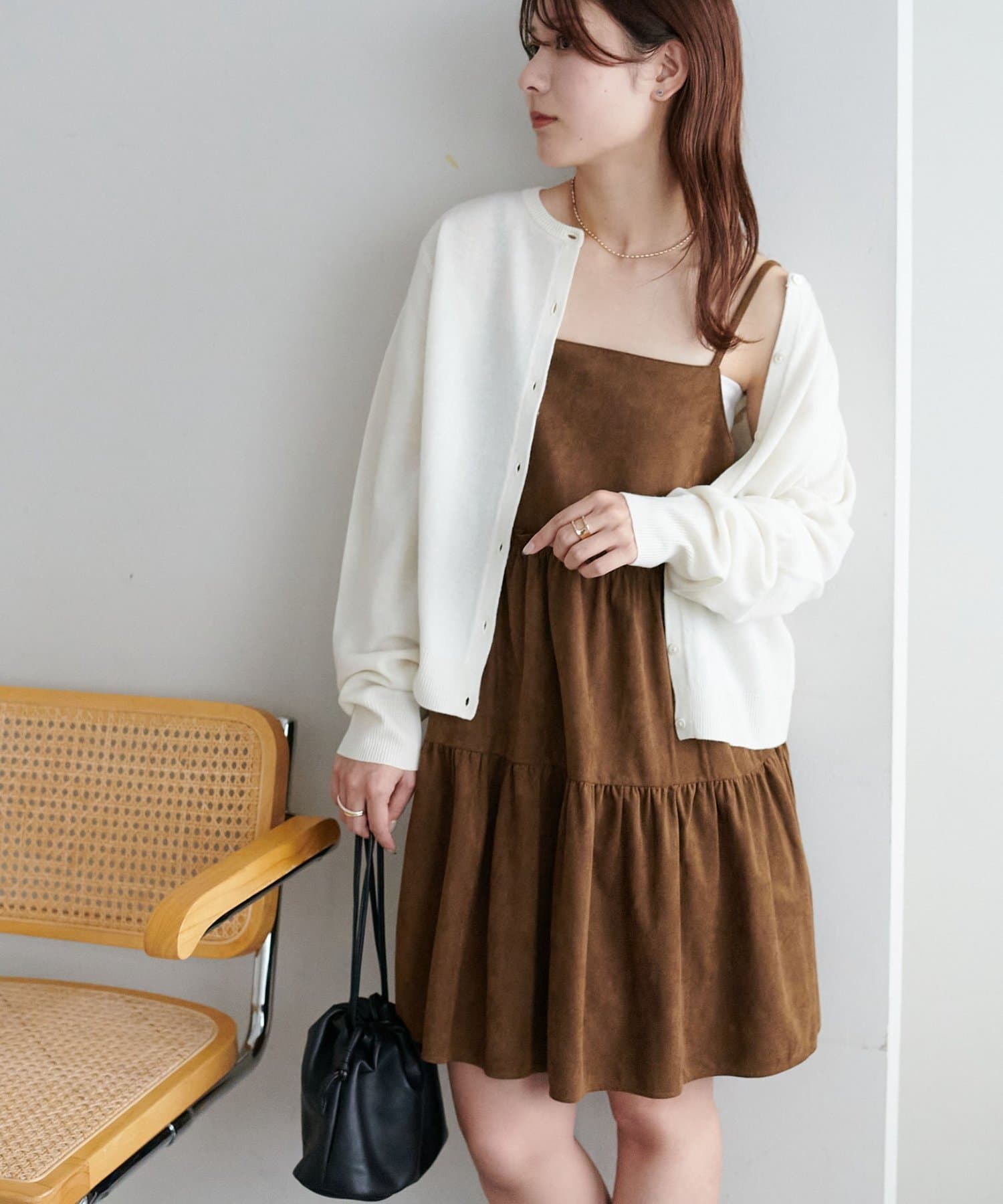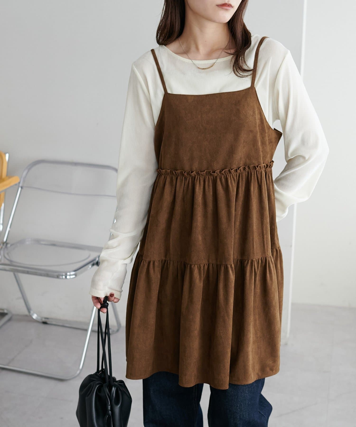 着回し力抜群のティアードキャミワンピース・ふんわり広がるティアードシルエットが目を惹くミニ丈キャミワンピース