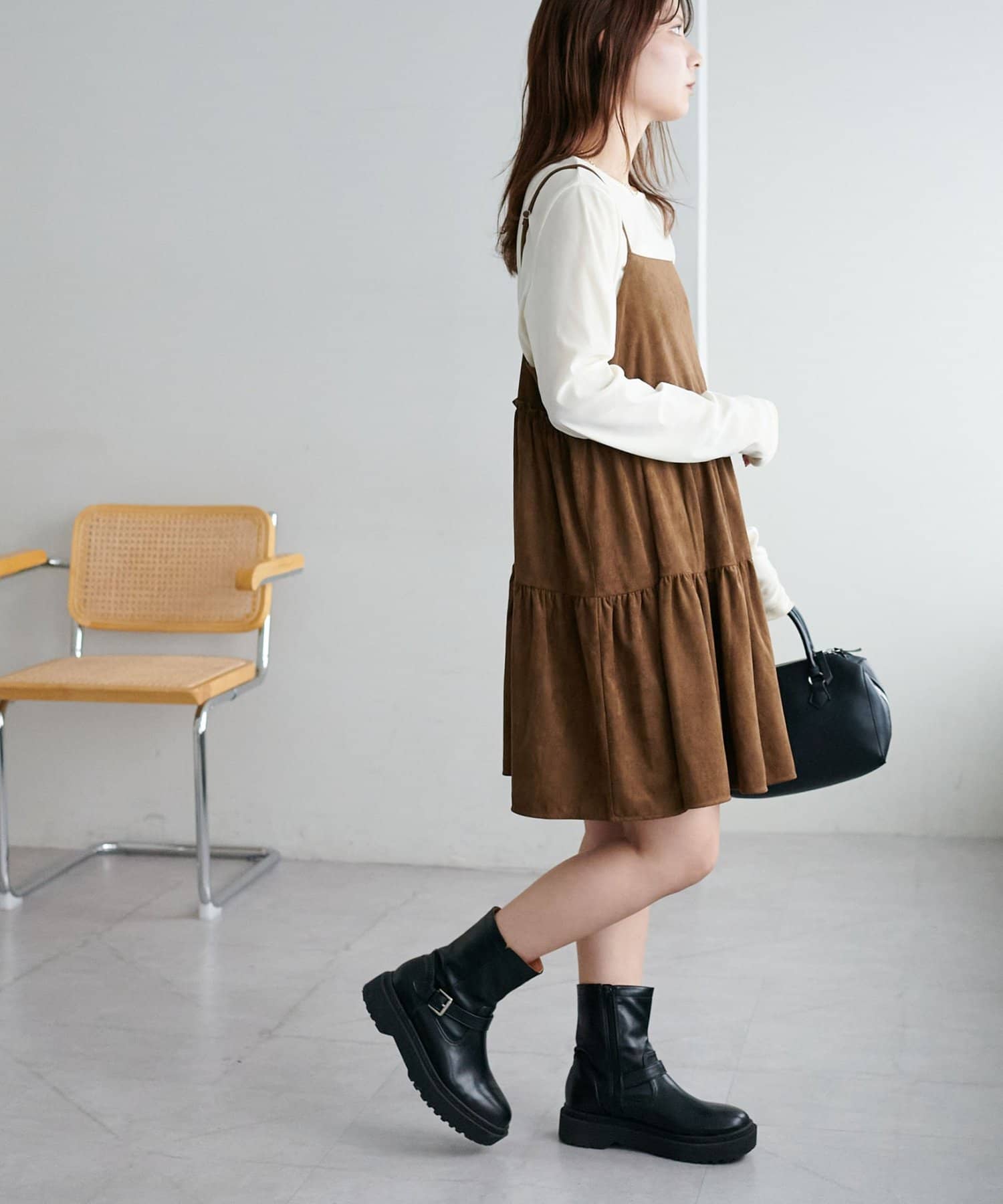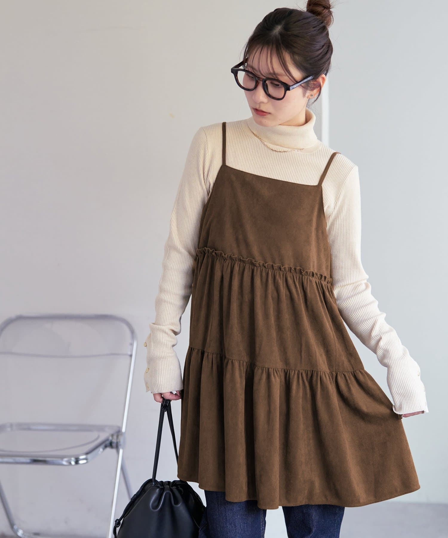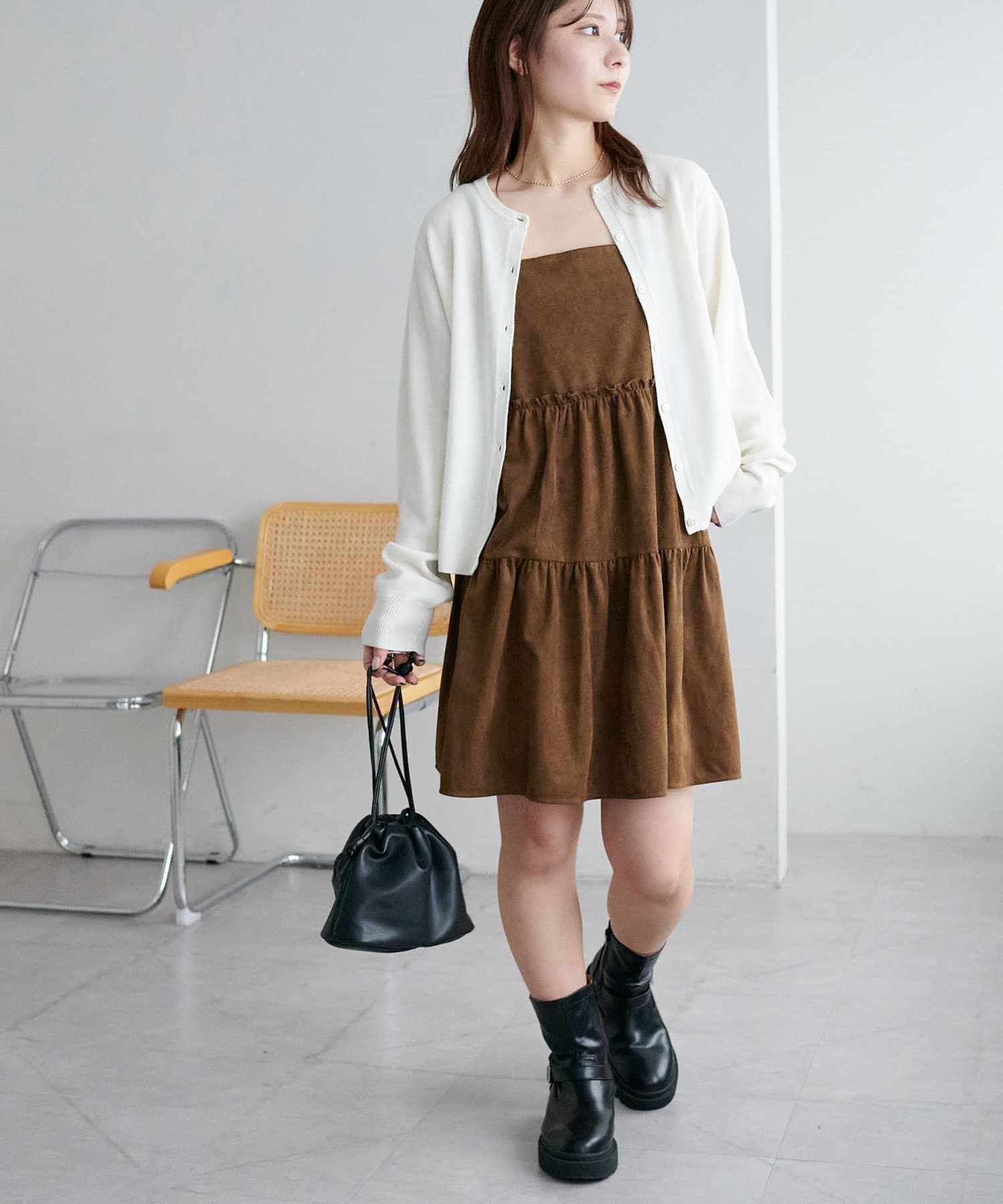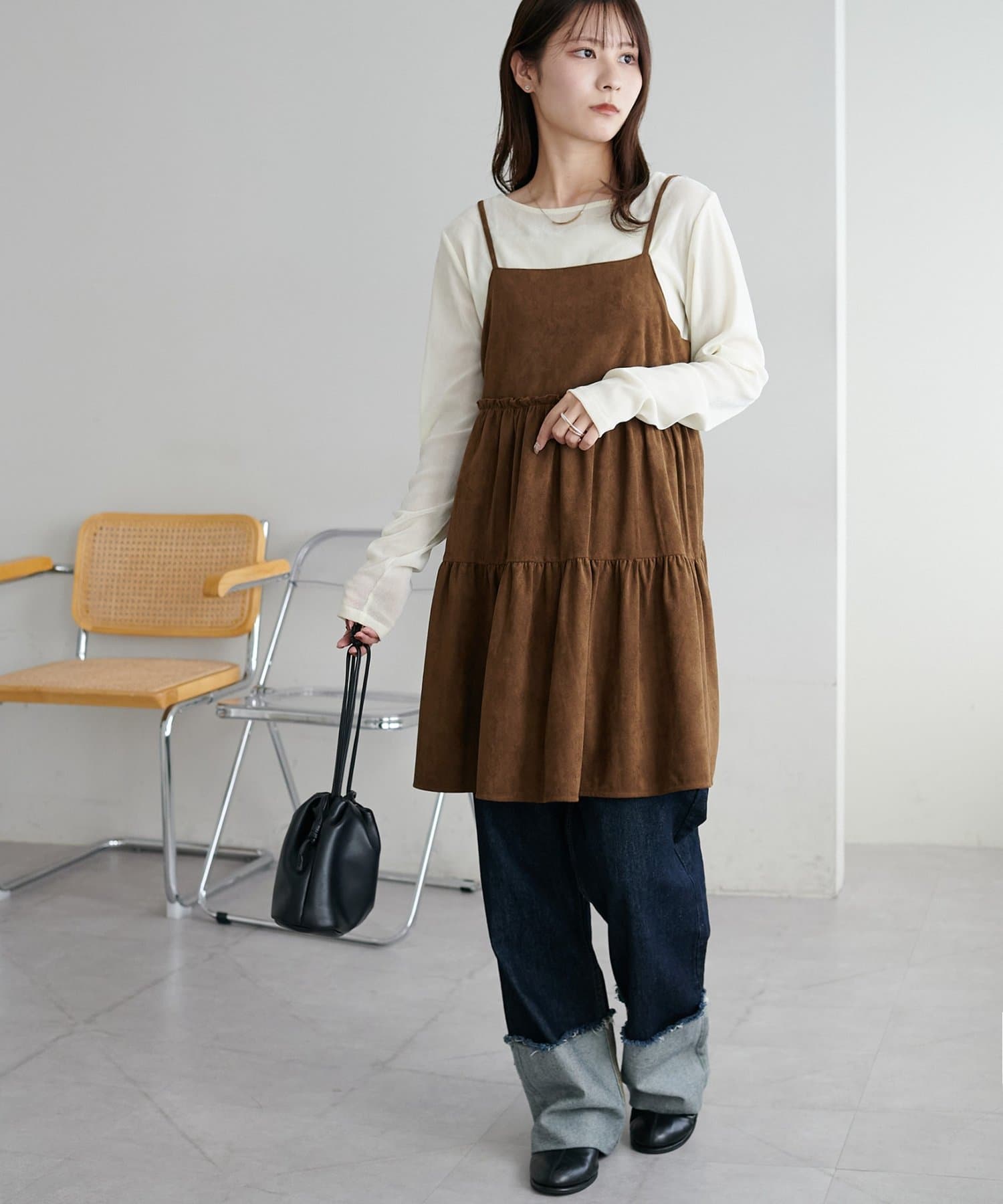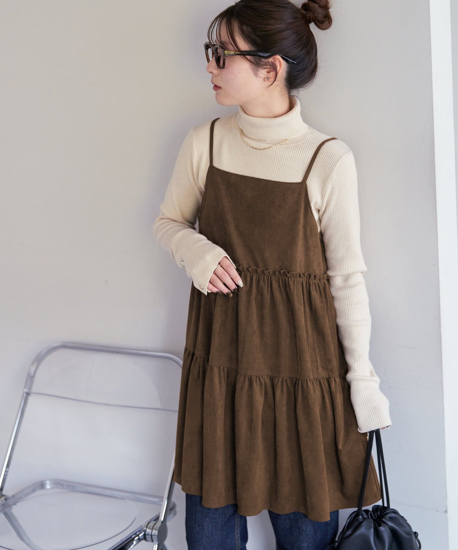 着回し力抜群のティアードキャミワンピース・ふんわり広がるティアードシルエットが目を惹くミニ丈キャミワンピース