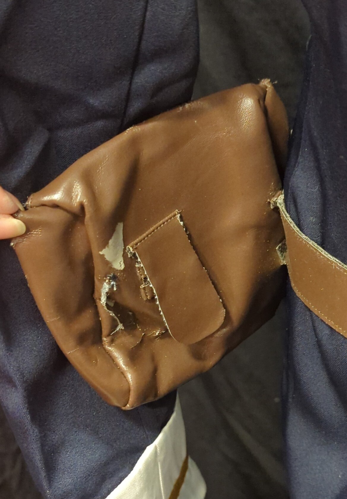 【状態】 状態5/シャツ、ネクタイ欠/ジャケット襟ぐり汚れ/ポーチ、ベルト合皮イタミ大