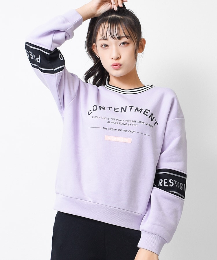 裏起毛袖ロゴプリントトレーナー