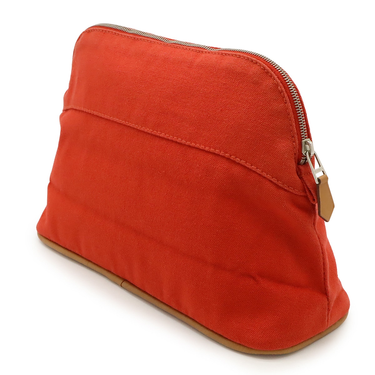 # HERMES エルメス ボリードポーチ25 化粧ポーチ コスメポーチ マルチポーチ 小物入れ キャンバス レザー レッド 赤