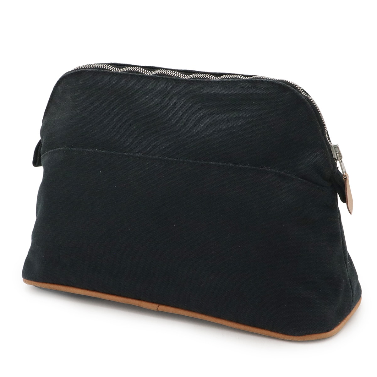 # HERMES エルメス ボリードポーチ25 化粧ポーチ コスメポーチ マルチポーチ 小物入れ キャンバス レザー ブラック 黒 ナチュラル