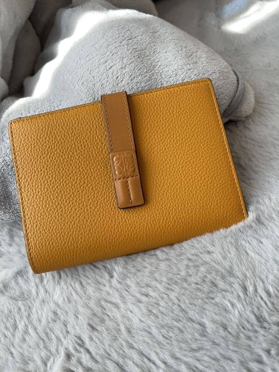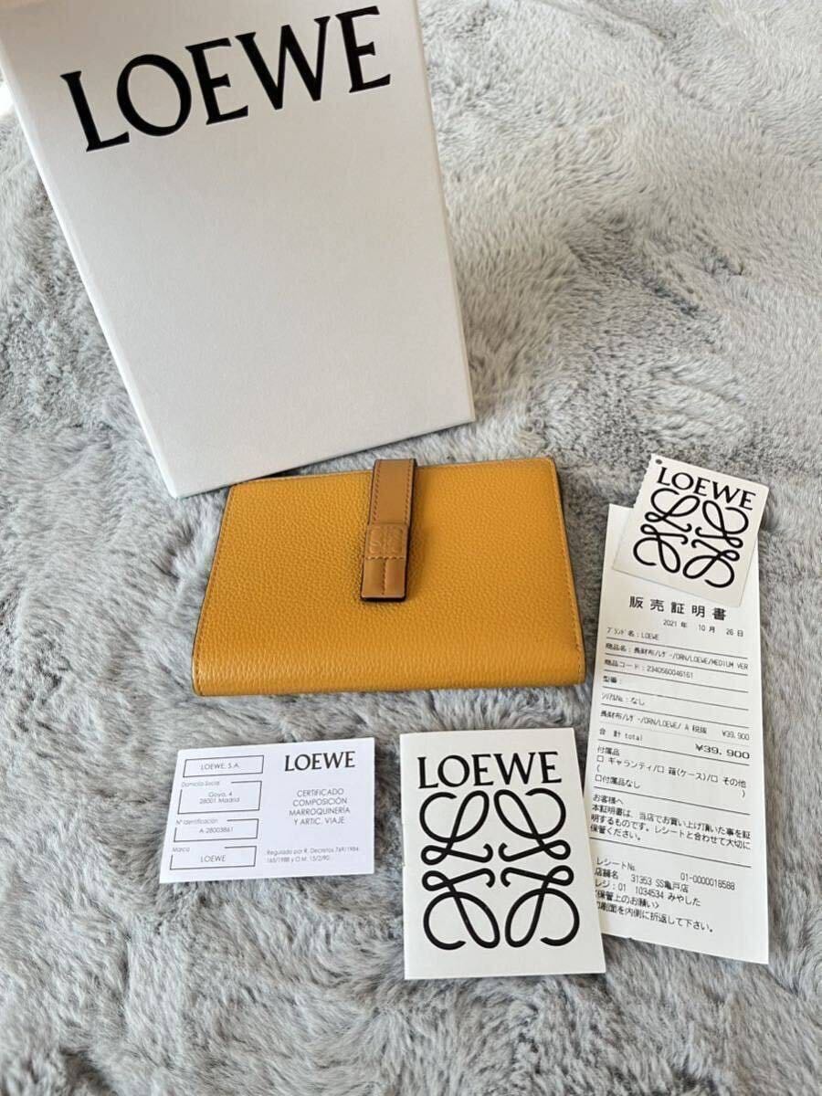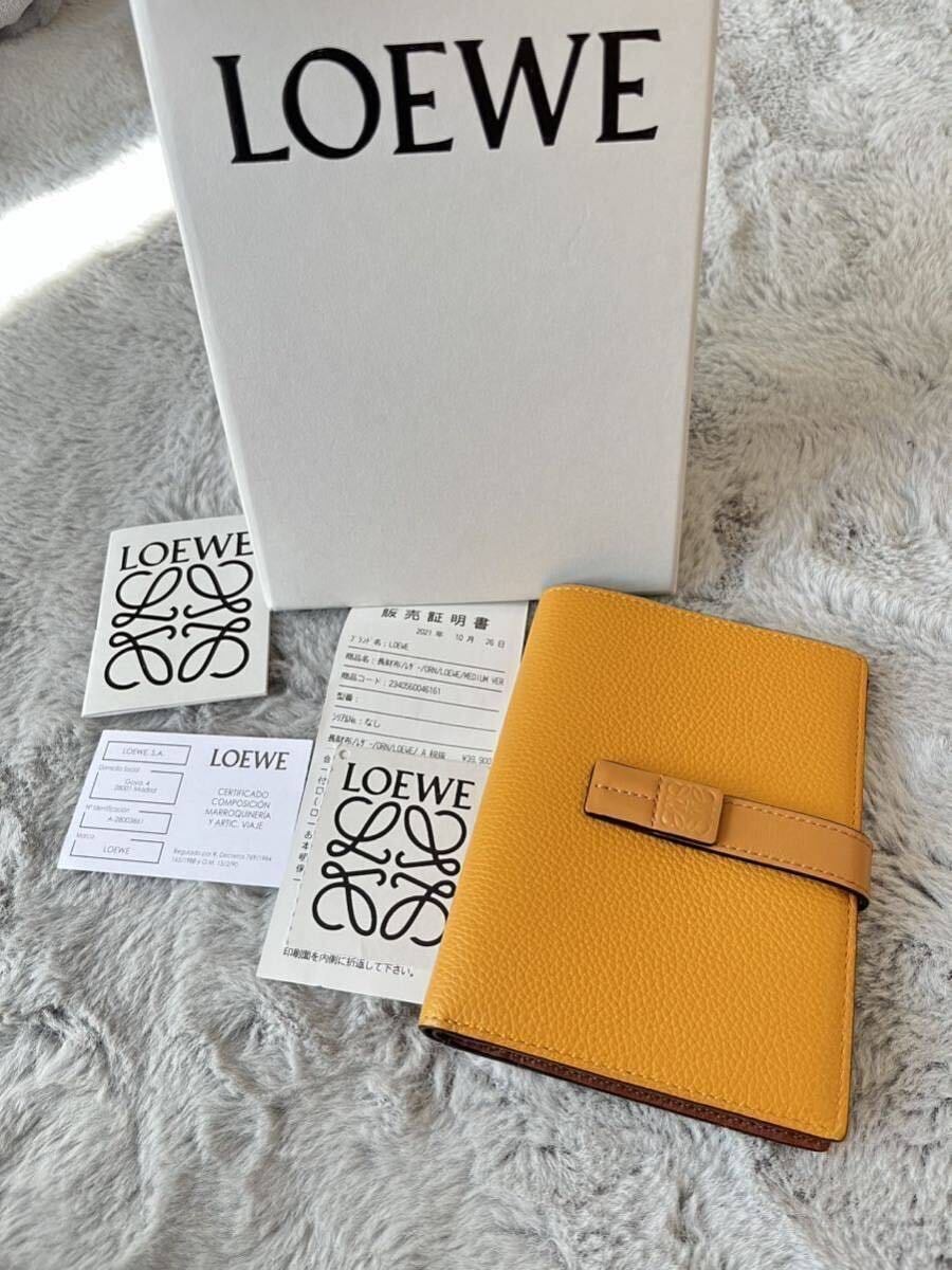 本物 LOEWE ロエベ バーティカル ウォレット スモール 二つ折り財布 ミニ財布 グリーン イエロー コンパクト アナグラム レディース メンズ