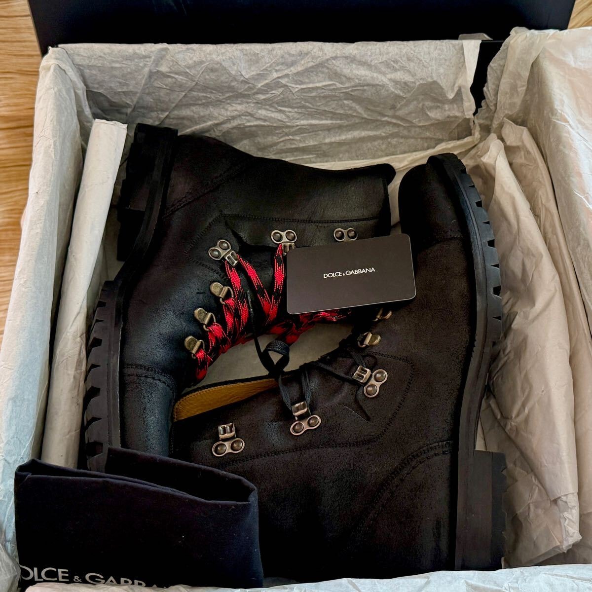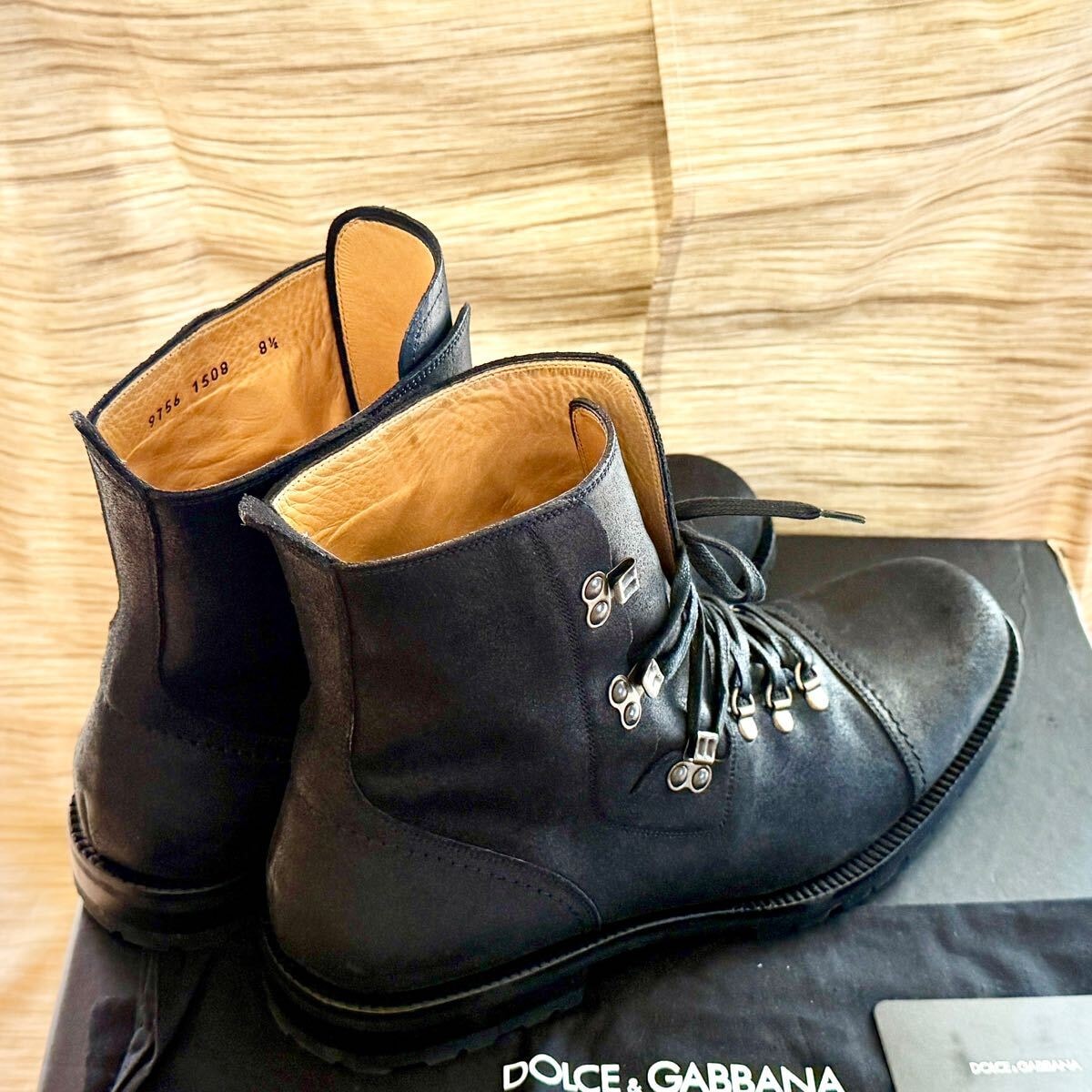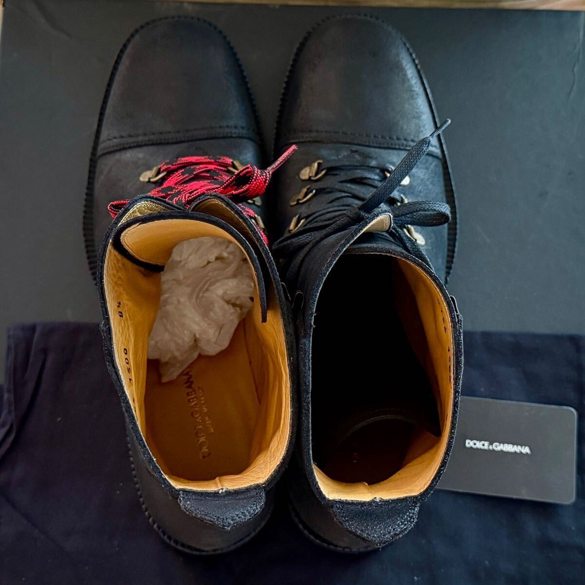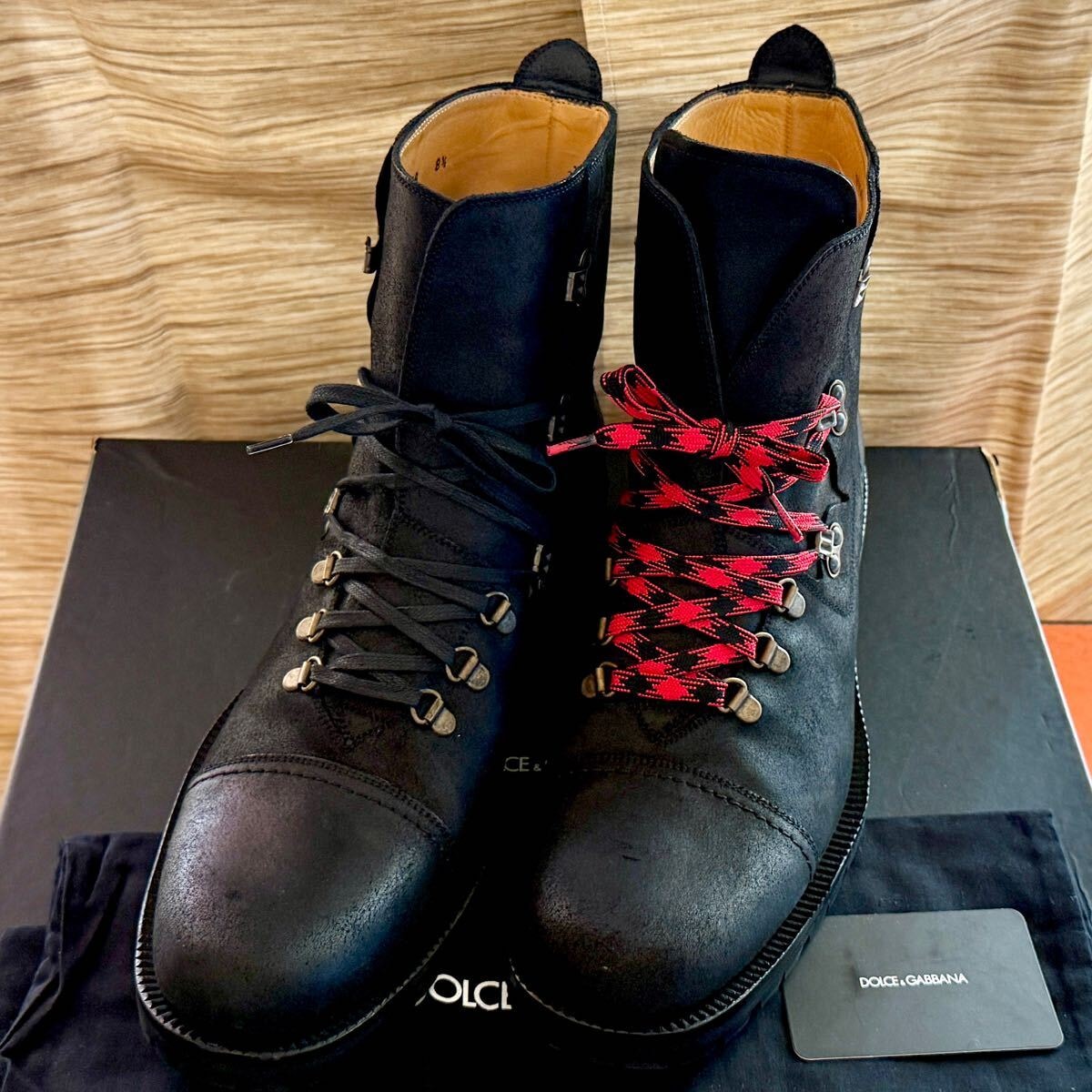 ドルチェ&ガッバーナのレザーハイカットブーツ。 一度履いただけの極美品ですが、写真にてご判断頂きNCNRにてお願い申し上げます。 (赤黒の靴紐は社外品です。外箱蓋に汚れ破れ有り) - ブランド: Dolce & Gabbana - 色: ブラック - 特徴: マットブラックレザー(バックスキンではありません) - 付属: レース2種類 / 保存袋 - 素材: レザー - スタイル: ハイカットブーツ ※梱包は外箱にエアキャップ包装となります。 ご覧いただきありがとうございます。 #BABYMETAL #ベビメタ #ヘビメタ