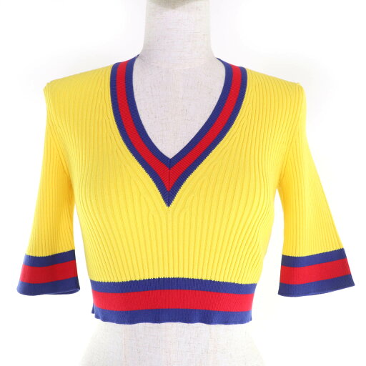 美品☆HERMES エルメス 2E2640DQ シルク混 クロップド丈 ノースリーブ ニット トップス ブラウン系 36 イタリア製 レディース【中古】