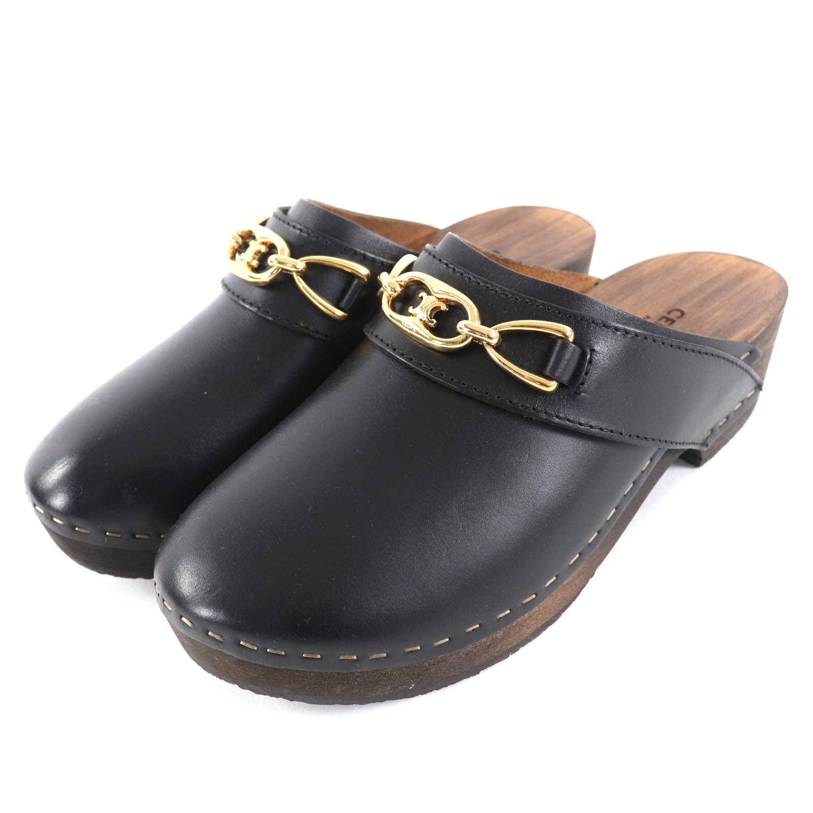 極美品△CELINE セリーヌ 11685 カバ アナイス トリオンフ ミディアム レザー トートバッグ 肩掛け可◎ ブラック イタリア製 レディース【中古】
