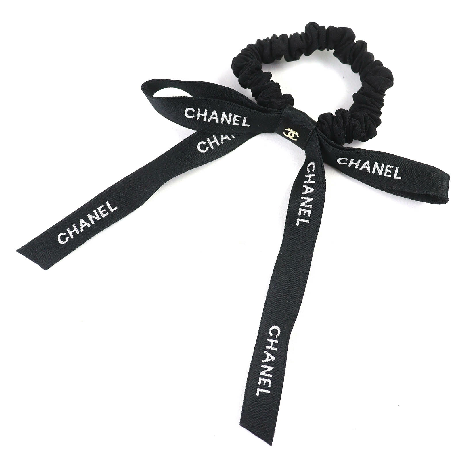 極美品☆CHANEL シャネル シルク メティエダール コレクション ココマーク リボン シュシュ ヘアアクセサリー グレー系 イタリア製 レディース【中古】