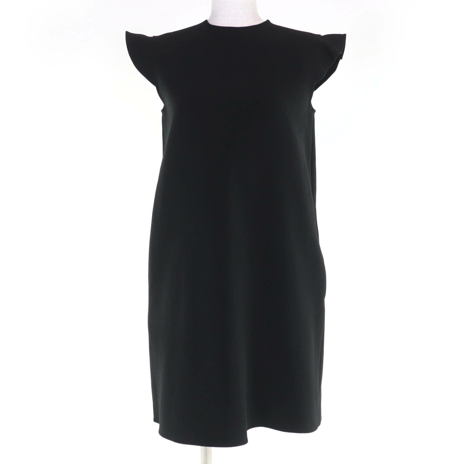 極美品【YOKO CHAN|ヨーコ チャン】定価6万5千円 ヘムフレア ミドルレングスドレス 袖フレアドレス フリル 黒 ブラック 36 即決