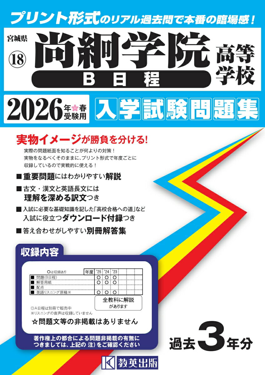 尚絅学院高等学校(B日程)(2024年春受験用)
