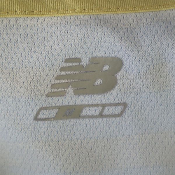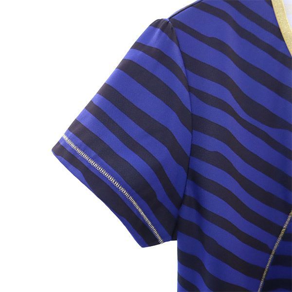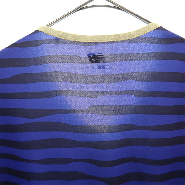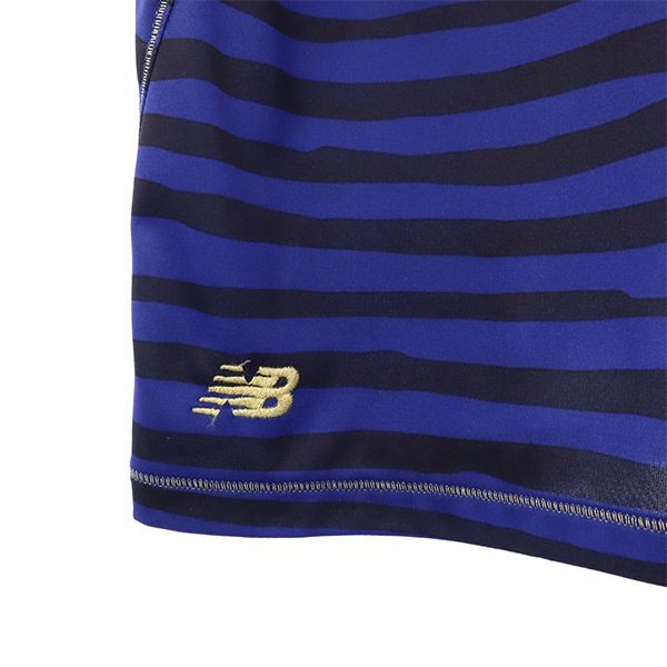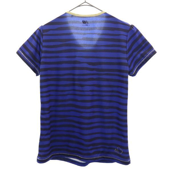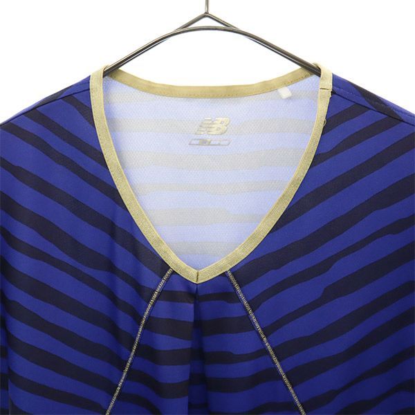 ニューバランス ボーダー 半袖 Tシャツ M ブルー×ネイビー NEW BALANCE スポーツ トレーニング ウォームアップ ロゴ刺繍 レディース