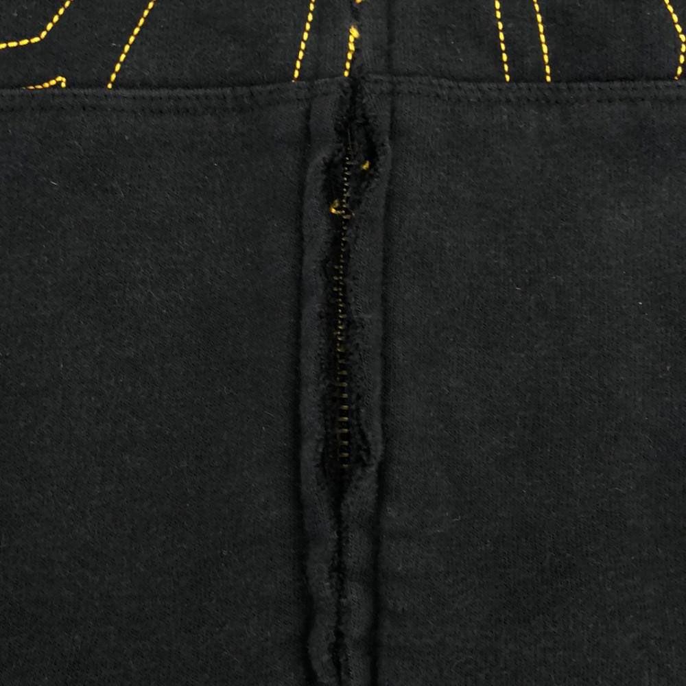 全体的に若干の色褪せ、毛羽立ちあり。袖口に若干の毛玉あり。ファスナー部分の生地が擦れにより破れています。サイズタグに破れあり。着用感がございますが、古着にご理解の上ご購入をお願い致します。