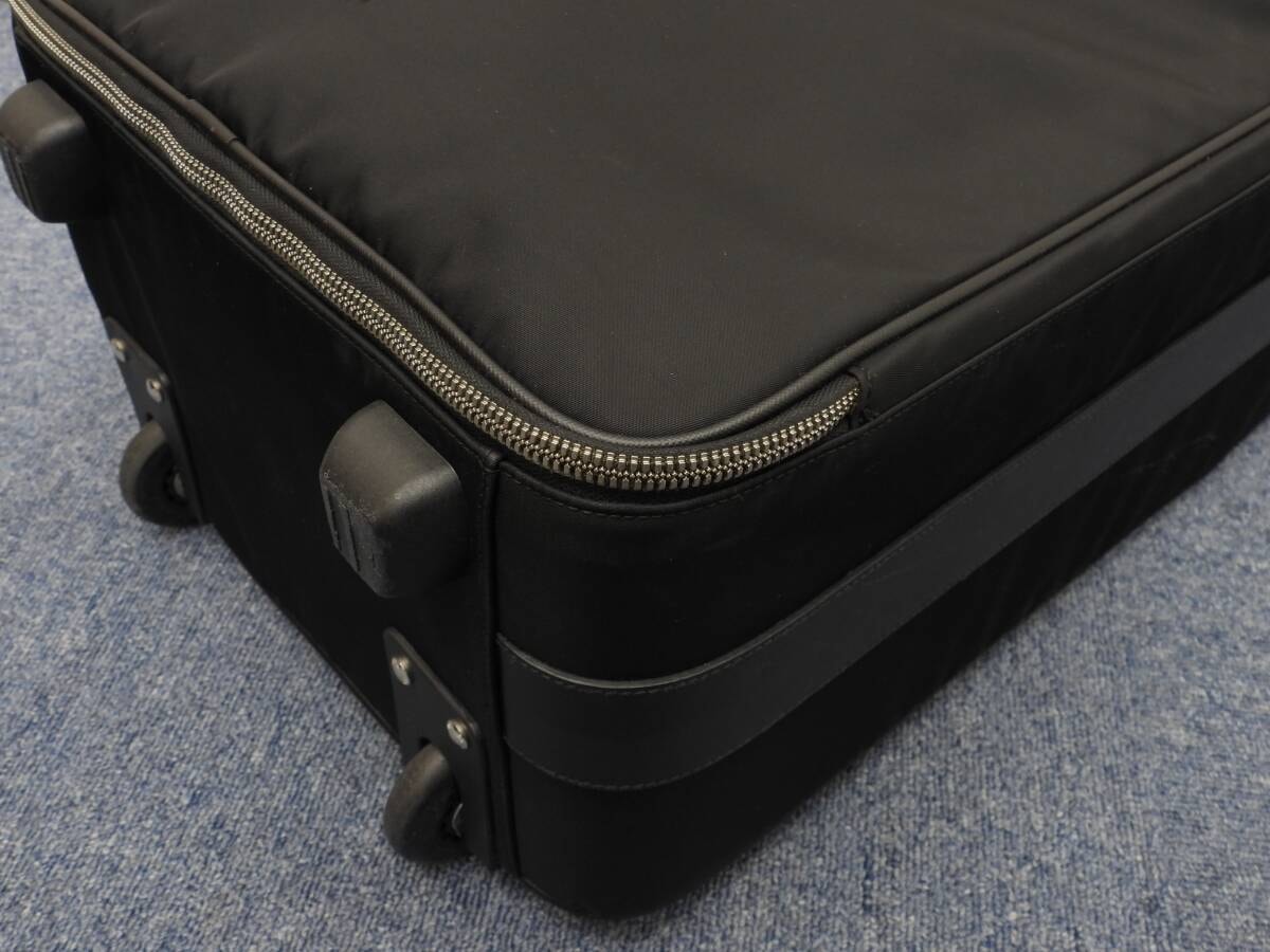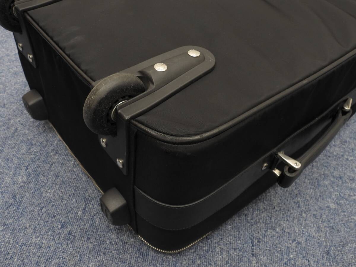 情報 : ボディは薄スレ・薄汚れが全体的にところどころございます。底部角・底にスレ・削れが少しございます。ローラーは薄スレ・薄汚れが全体的にございますが、弱りはございません。ハンドルは気になるスレ・汚れ・弱りもなく状態は良いです。収納可能なキャリーグリップは気になるスレ・汚れ・弱りもなく状態は良いです。バッグ内はシミ・汚れもなく綺麗です。ファスナーの開閉は少しかためです。金具部分は薄スレ・小傷が少しございますが、メッキ剥げはほとんどございません。